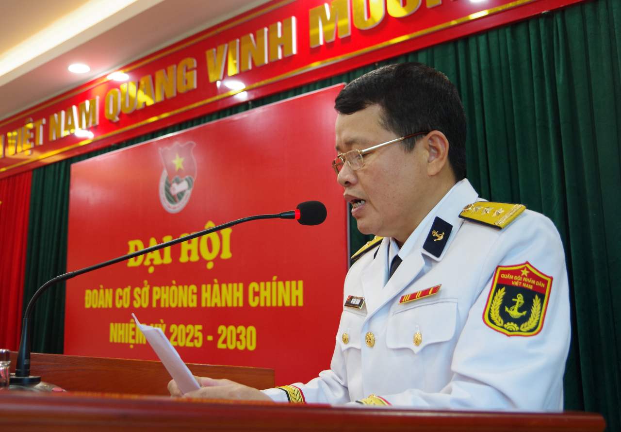 Sáng 3/10, tại Hải Phòng, Đoàn cơ sở Phòng Hành chính, Bộ Tham mưu Hải quân tổ chức Đại hội nhiệm kỳ 2025 - 2030. Đại tá Vũ Xuân Tình, Phó Chủ nhiệm Chính trị Bộ Tham mưu dự, chúc mừng đại hội. Thượng tá Vũ Văn Thành, Bí thư Đảng ủy, Phó trưởng phòng Hành chính dự, chỉ đạo đại hội.