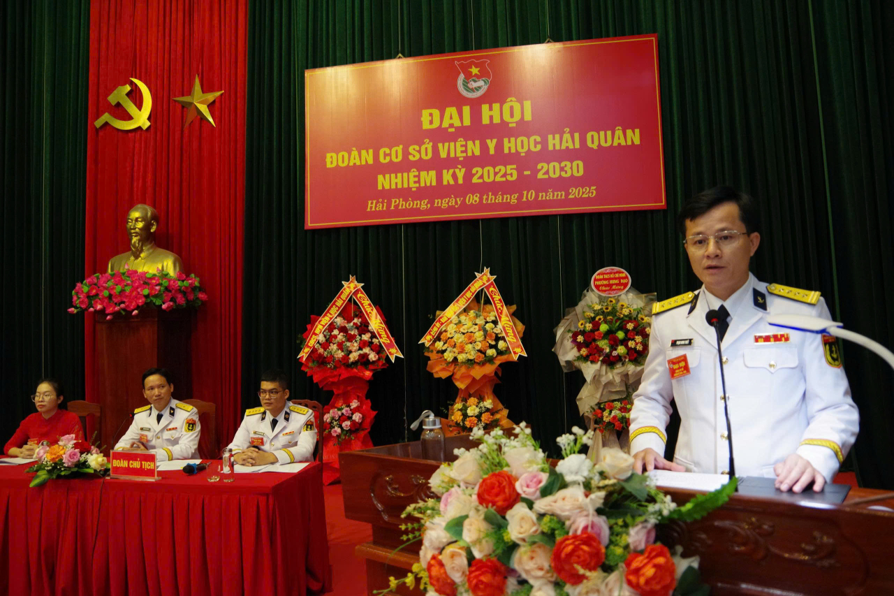 HQ Online - Ngày 8/10, tại Hải Phòng, Đoàn cơ sở Viện Y học (Cục Hậu cần - Kỹ thuật Hải quân) tổ chức thành công Đại hội nhiệm kỳ 2025 - 2030. Đại tá Nguyễn Thanh Tùng, Phó Chủ nhiệm Chính trị Cục Hậu cần - Kỹ thuật dự, chỉ đạo.