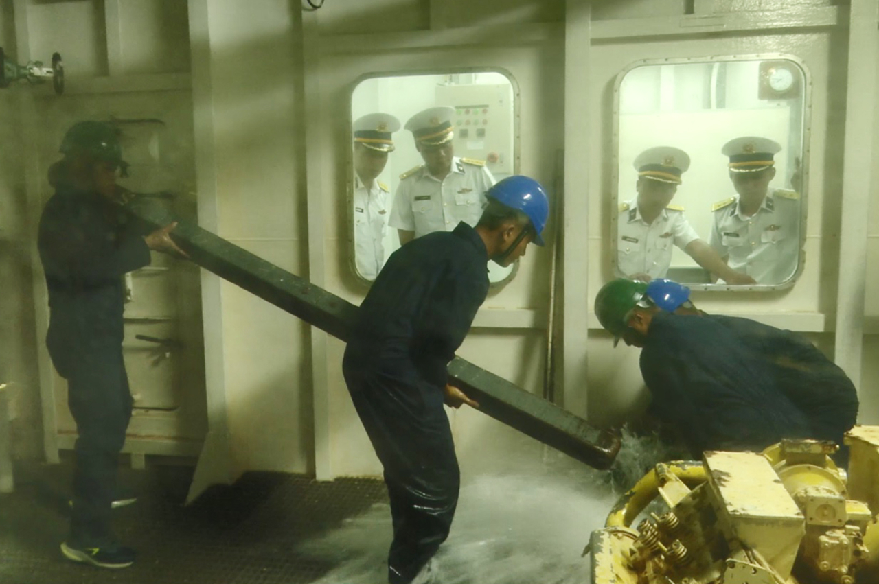 Cán bộ, nhân viên của Trung tâm thực hành mô phỏng đã thực hiện các hoạt động chống cháy, chống chìm với nhiều cấp độ phức tạp khác nhau…