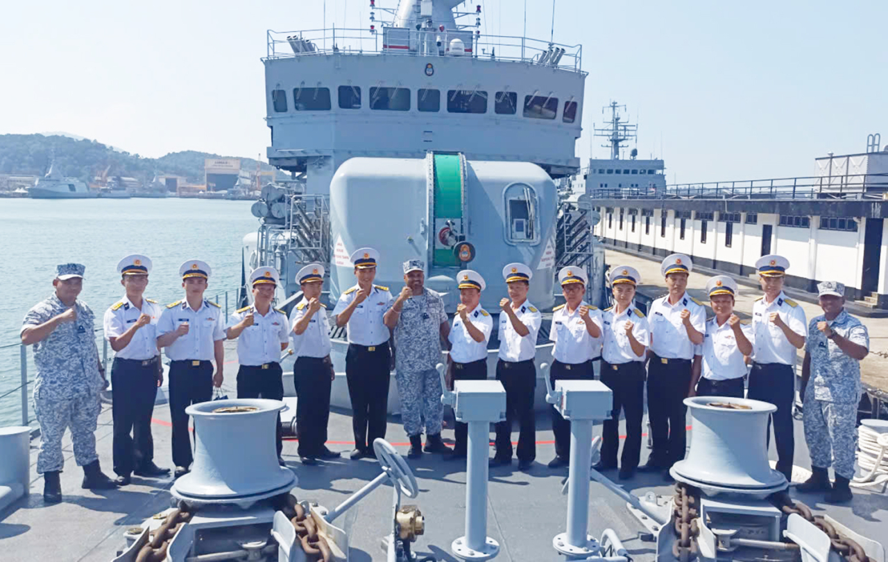 Cán bộ, chiến sĩ Tàu 17, Hải quân Việt Nam và cán bộ, thủy thủ Tàu 25 thuộc Hạm đội miền Tây, Hải quân Malaysia chụp ảnh lưu niệm trên Tàu 25