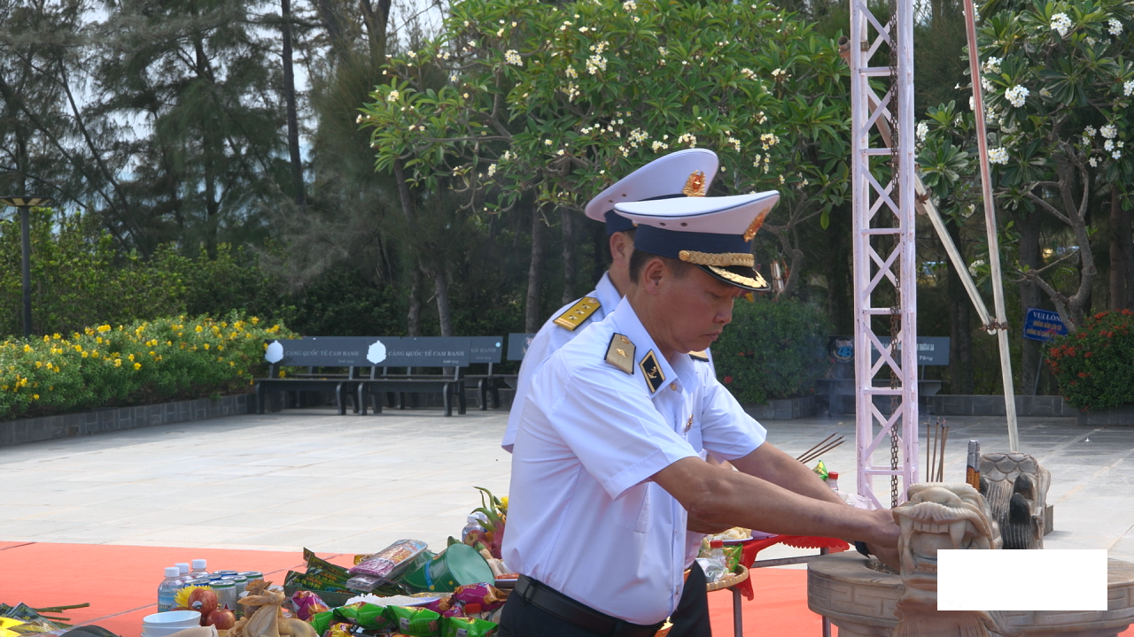 Trong không khí trang nghiêm và xúc động, đoàn công tác đã dâng hoa, dâng hương và dành phút mặc niệm để tưởng nhớ 64 cán bộ, chiến sĩ Hải quân nhân dân Việt Nam đã anh dũng hy sinh trong sự kiện Gạc Ma năm 1988 khi thực hiện nhiệm vụ bảo vệ chủ quyền biển đảo thiêng liêng của Tổ quốc.