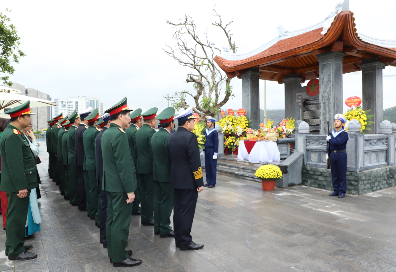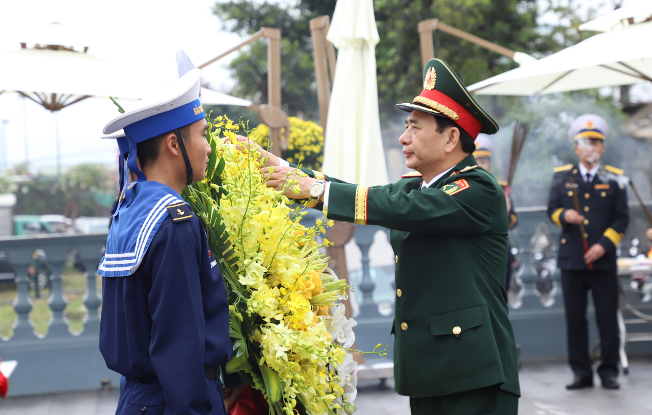 HQ Online - Chiều 28/2, tại Quảng Ninh, Đại tướng Phan Văn Giang, Ủy viên Bộ Chính trị, Phó Bí thư Quân ủy Trung ương, Bộ trưởng Bộ Quốc phòng và đoàn công tác Quân ủy Trung ương, Bộ Quốc phòng tổ chức Lễ dâng hoa, dâng hương tưởng niệm Đại tướng Võ Nguyên Giáp tại Văn bia trong khuôn viên Khu B, Đoàn An điều dưỡng 22 Hạ Long, Cục Chính trị, Quân chủng Hải quân.