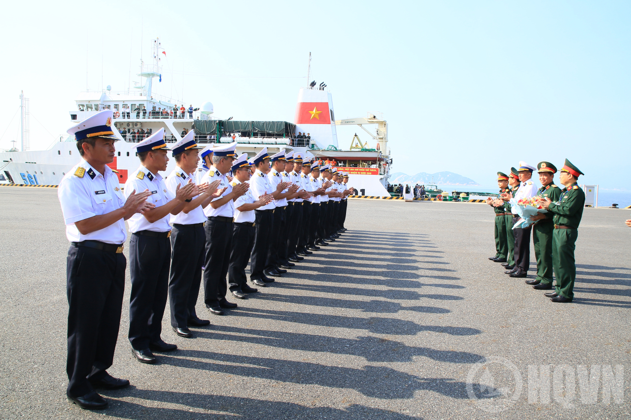 HQ Online - Chiều 14/4, Tàu 561, Vùng 4 Hải quân đã cập cảng Cam Ranh, tỉnh Khánh Hòa, đưa Đoàn công tác số 9 năm 2026 hoàn thành tốt chuyến thăm, làm việc tại quần đảo Trường Sa và Nhà giàn DK1 bảo đảm an toàn tuyệt đối. Đại tá Ngô Đình Xuyên, Phó Tham mưu trưởng Hải quân làm Trưởng đoàn công tác.