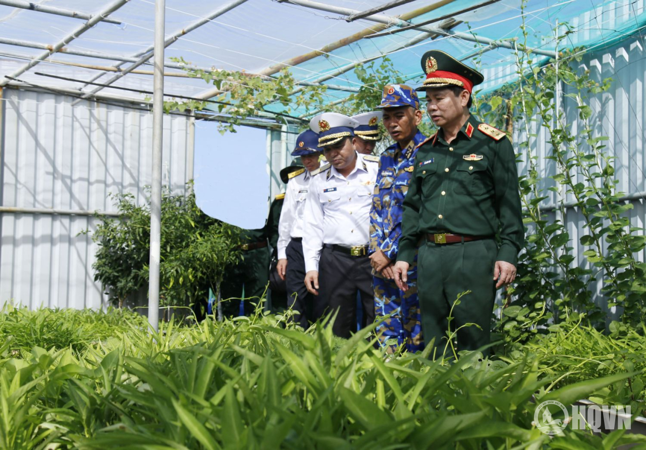 Thủ trưởng đoàn công tác tham quan khu tăng gia trên Nhà giàn DK1/15