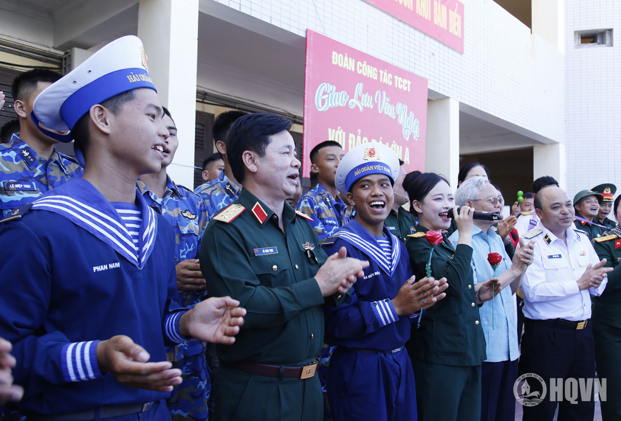 Thủ trưởng đoàn công tác giao lưu văn nghệ với cán bộ, chiến sĩ đảo Đá Lớn A