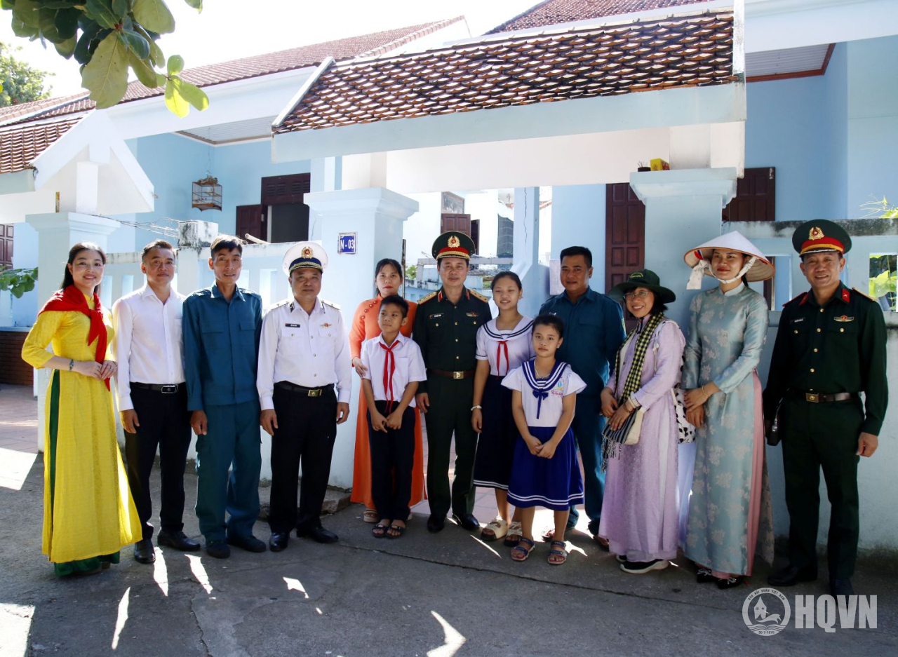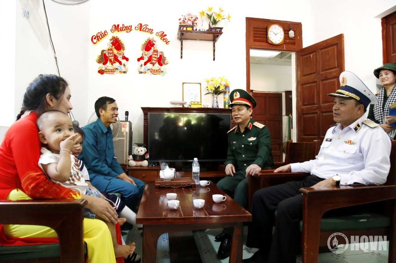 Thủ trưởng đoàn công tác và các đại biểu thăm, động viên các hộ dân sinh sống trên đảo Trường Sa và đảo Sinh Tồn