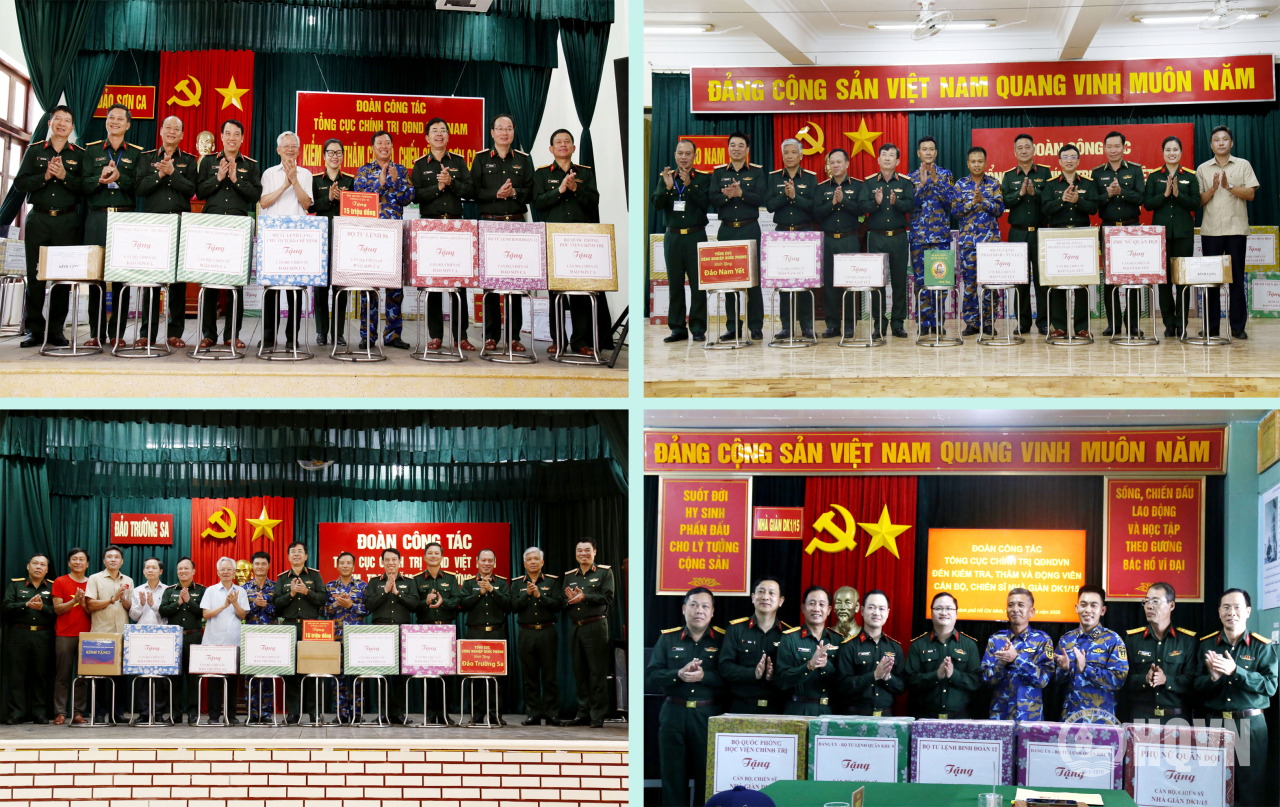 Nhân dịp này, đoàn công tác đã trao tặng nhiều phần quà của Bộ Quốc phòng, Tổng cục Chính trị và các đơn vị đến quân và dân ở đặc khu Trường Sa, Nhà giàn DK1/15; thực hiện các hoạt động ý nghĩa như đóng góp ủng hộ Chương trình "Xanh hóa Trường Sa"; trồng cây, làm bánh trôi, giao lưu văn nghệ… Qua đó thể hiện tinh thần cả nước luôn hướng về Trường Sa, chung sức, đồng lòng vì sự nghiệp bảo vệ chủ quyền biển đảo của Tổ quốc.
