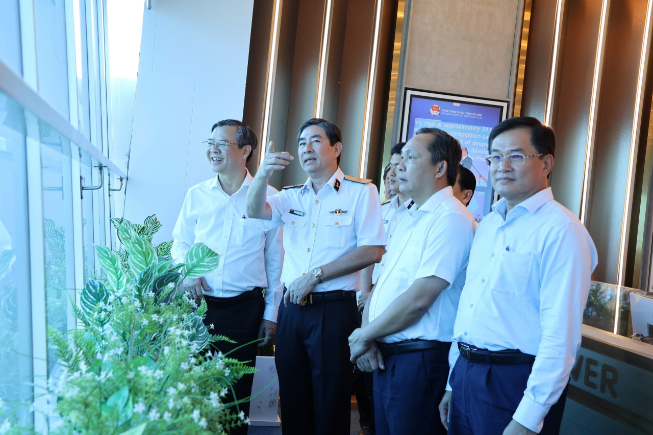 Đoàn tham quan Trung tâm điều hành sản xuất và điều hành an ninh tại cảng Tân cảng Cát Lái