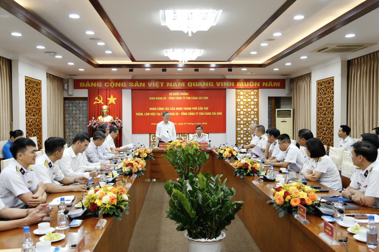 HQ Online - Chiều 1/4, tại cảng Tân cảng Cát Lái, đoàn công tác TP. Cần Thơ do đồng chí Trương Cảnh Tuyên, Phó Bí thư Thành uỷ, Chủ tịch UBND thành phố làm trưởng đoàn đến thăm và làm việc tại Binh đoàn 20 - Tổng công ty Tân cảng Sài Gòn. Thiếu tướng Ngô Minh Thuấn, Tư lệnh Binh đoàn 20, Chủ tịch kiêm Tổng Giám đốc Tân cảng Sài Gòn chủ trì tiếp đoàn.