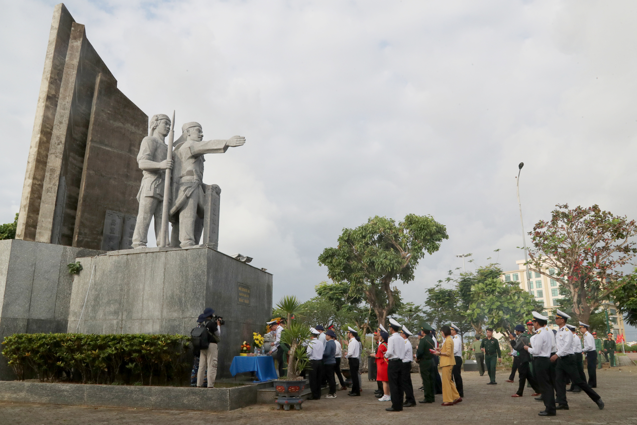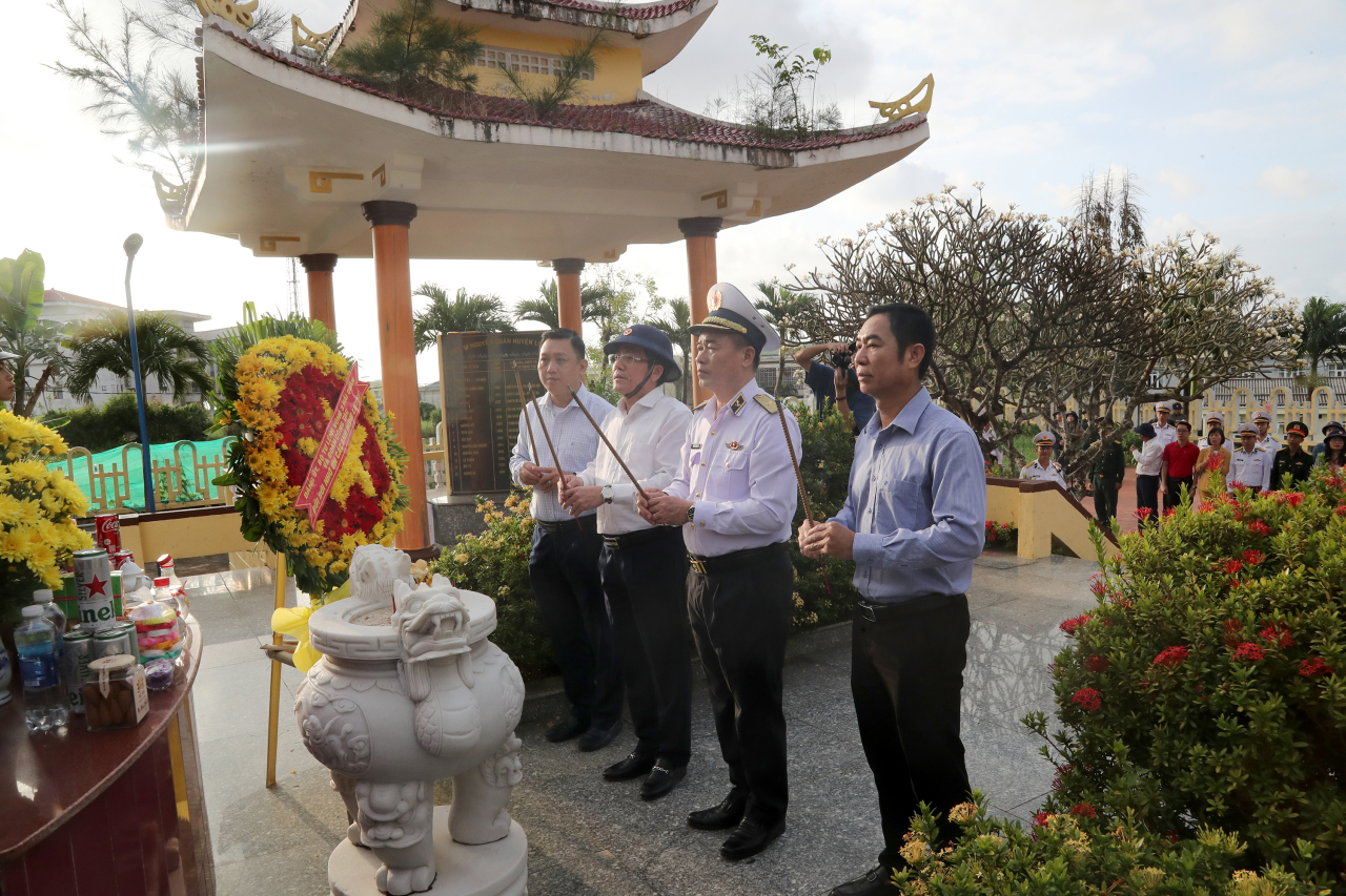 Đoàn công tác dâng hương tại Đài tưởng niệm Đội Hoàng Sa kiêm quản Bắc Hải và Nghĩa trang liệt sĩ đặc khu Lý Sơn