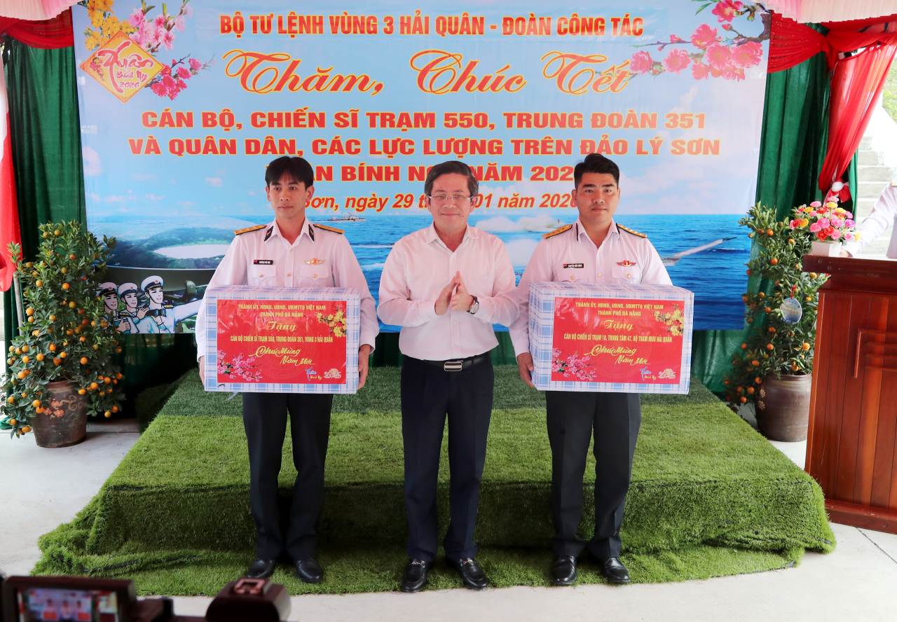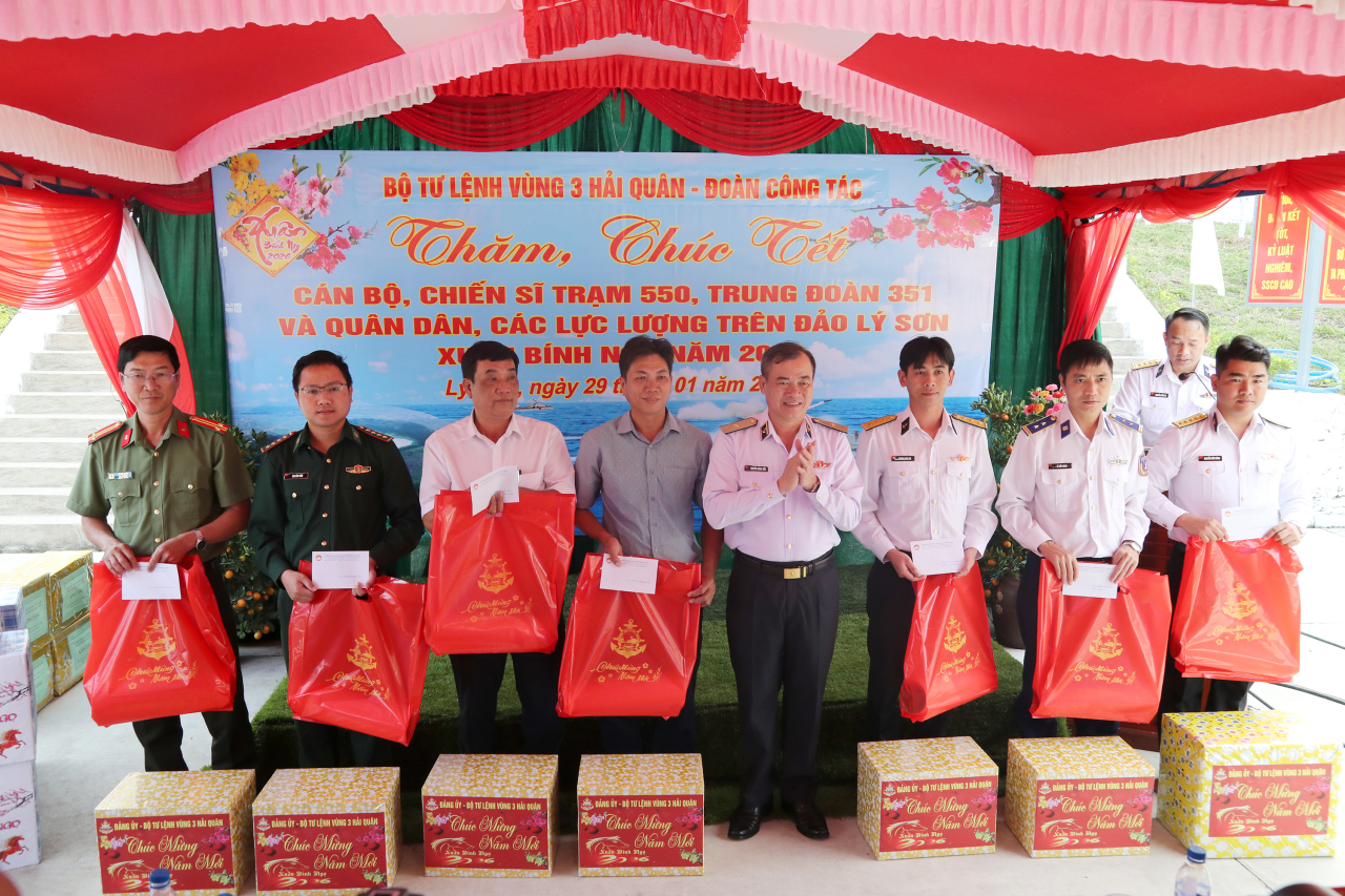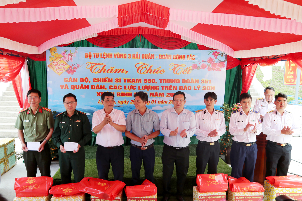 Nhân dịp này, đoàn công tác đã trao quà, gửi lời chúc mừng năm mới tới toàn thể cán bộ, chiến sĩ Trạm rađa 550, chính quyền địa phương, nhân dân đặc khu Lý Sơn và mong muốn đơn vị tiếp tục phát huy truyền thống, xây dựng đơn vị, địa phương vững mạnh toàn diện, giàu đẹp.