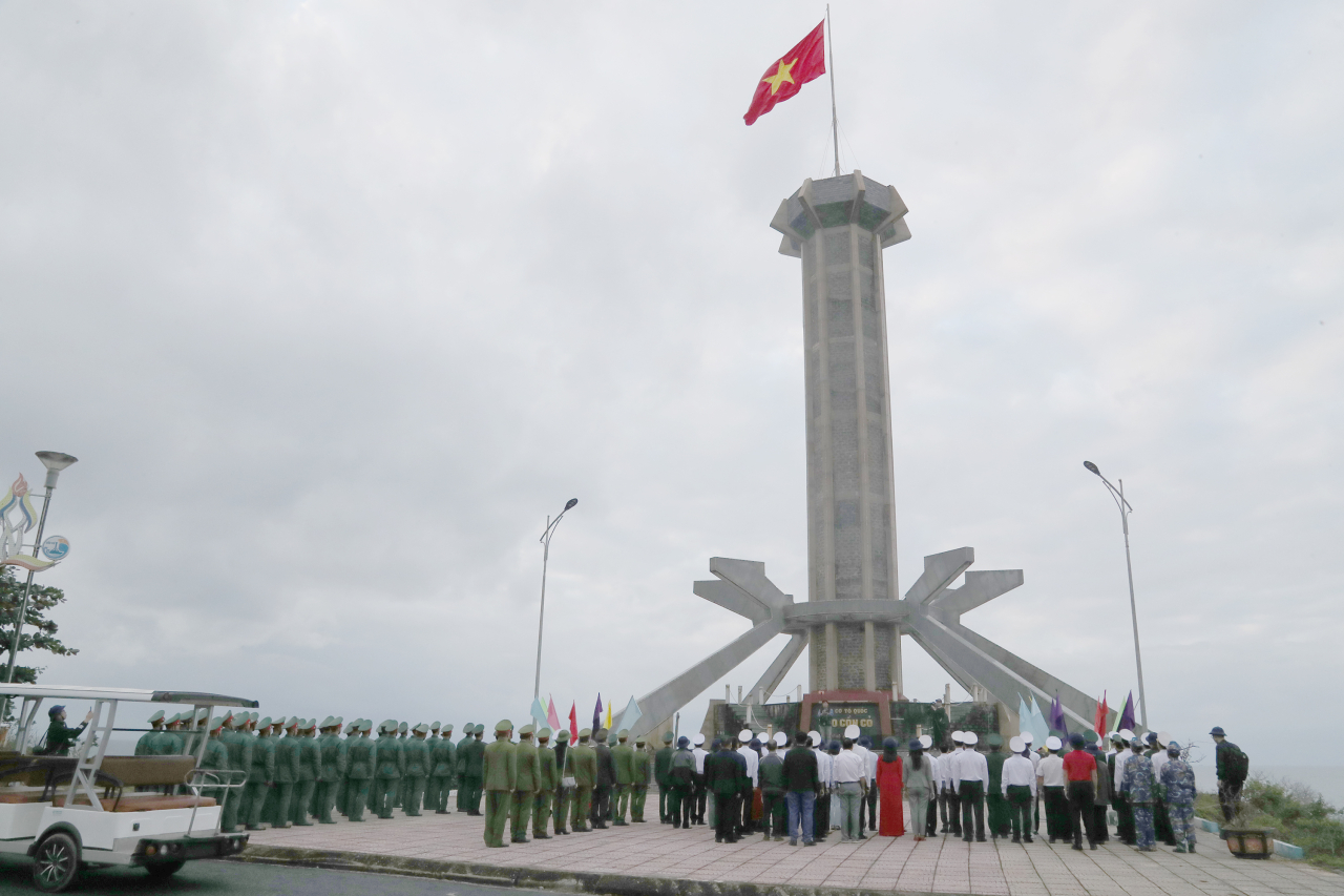 Ngay khi lên đảo, đoàn công tác và quân dân đặc khu tổ chức chào cờ Tổ quốc