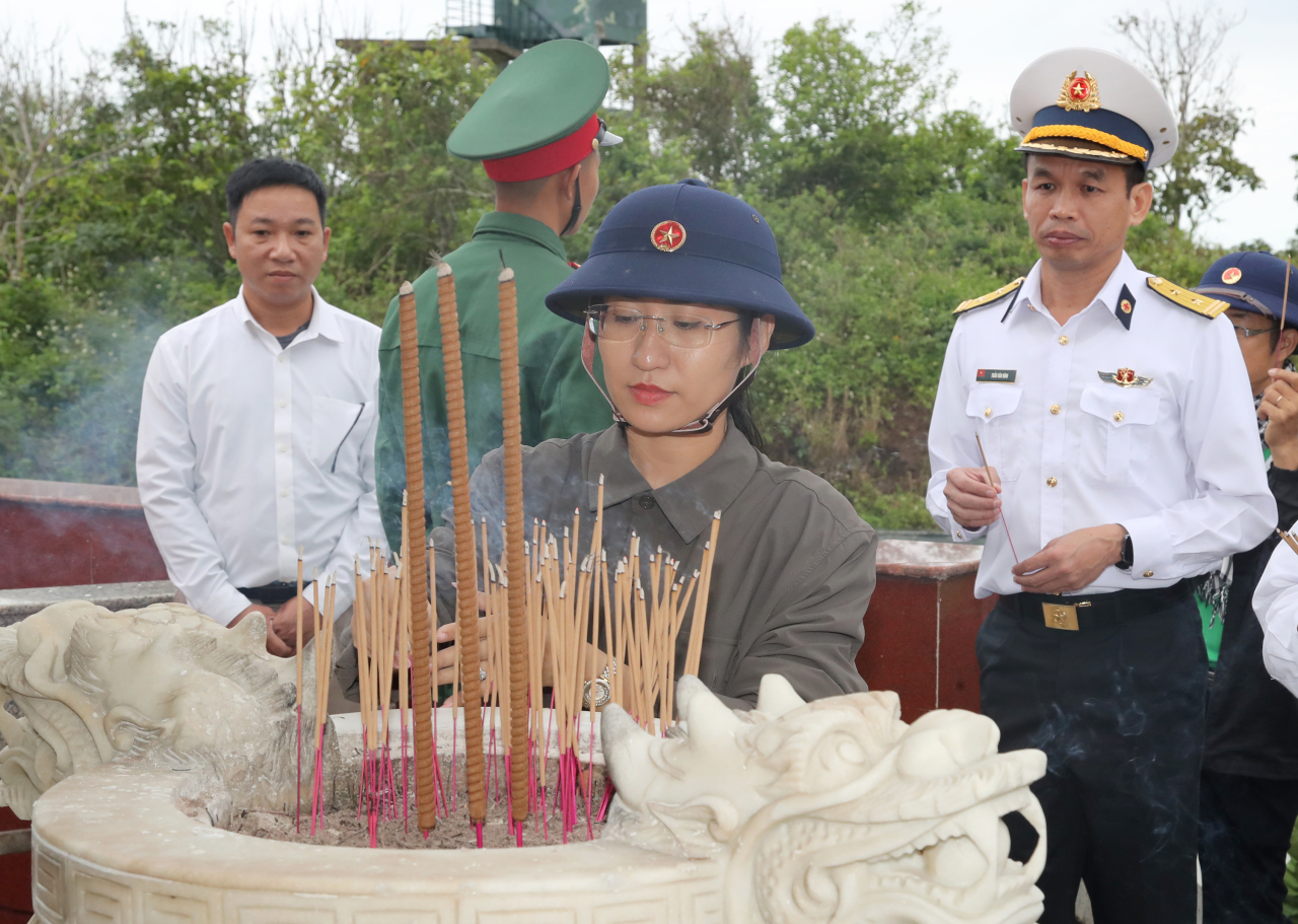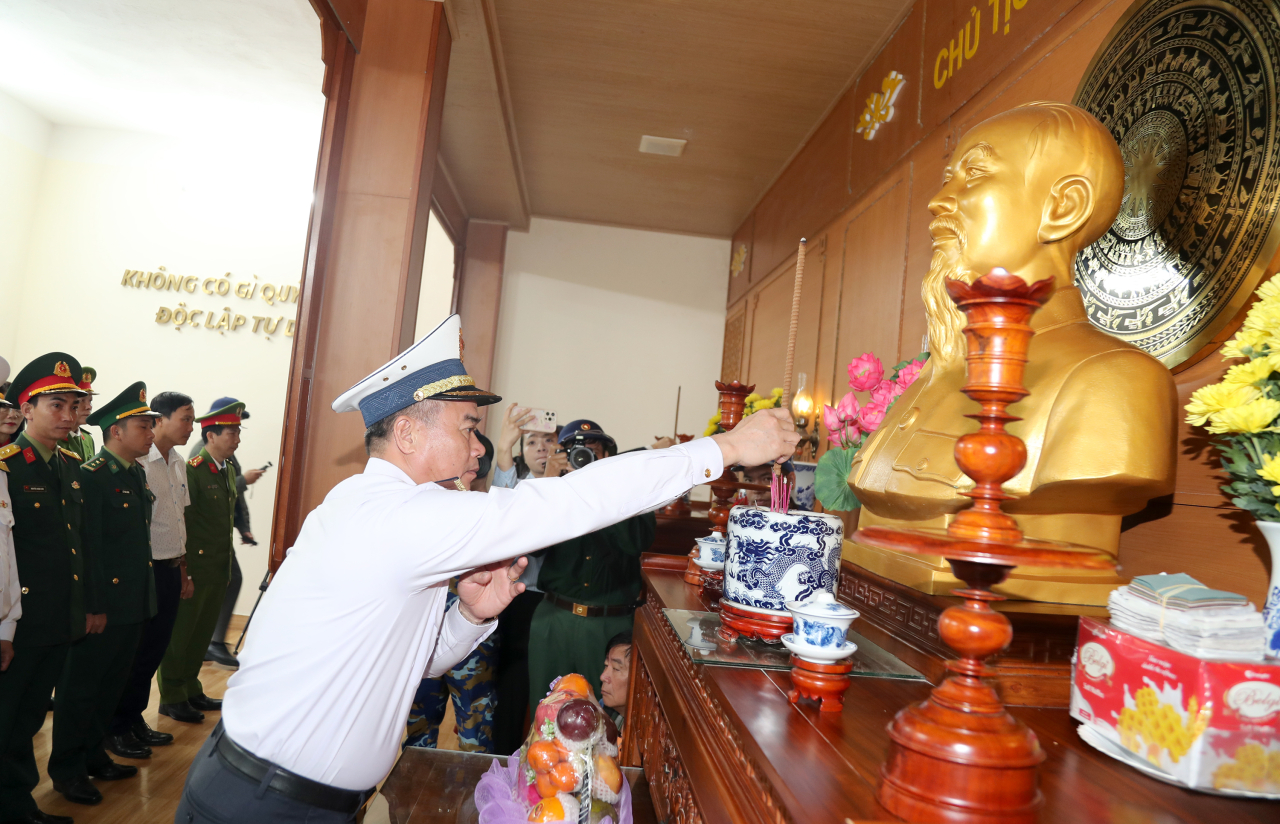 Đoàn công tác dâng hương tại Nhà lưu nhiệm Chủ tịch Hồ Chí Minh và tượng đài liệt sĩ ở đặc khu Cồn Cỏ