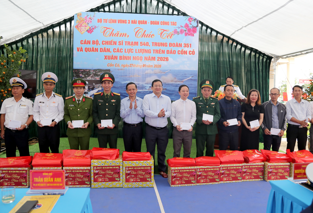 Đoàn công tác Vùng 3 và các địa phương, tổ chức, doanh nghiệp đã trao tặng quà Tết cho Đảng bộ, chính quyền, lực lượng vũ trang và ngư dân trên đảo; động viên cán bộ, chiến sĩ và nhân dân yên tâm công tác, đón Tết vui tươi, an toàn, tiết kiệm, sẵn sàng bước vào năm mới với khí thế và quyết tâm cao
