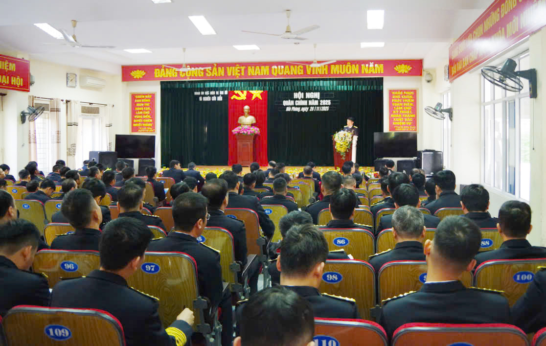 HQ Online - Sáng 26/11, tại Hải Phòng, Đoàn Đo đạc biên vẽ hải đồ và nghiên cứu biển (Bộ Tham mưu Hải quân) tổ chức Hội nghị Quân chính năm 2025. Đại tá Nguyễn Thịnh Tiệp, Phó Tham mưu trưởng Quân chủng dự, chỉ đạo. Đại tá Khương Văn Long, Đoàn trưởng chủ trì; Đại tá Lê Sĩ Toản, Bí thư Đảng ủy, Chính ủy Đoàn quán triệt nghị quyết lãnh đạo thực hiện nhiệm vụ năm 2026 của Đảng ủy Đoàn.