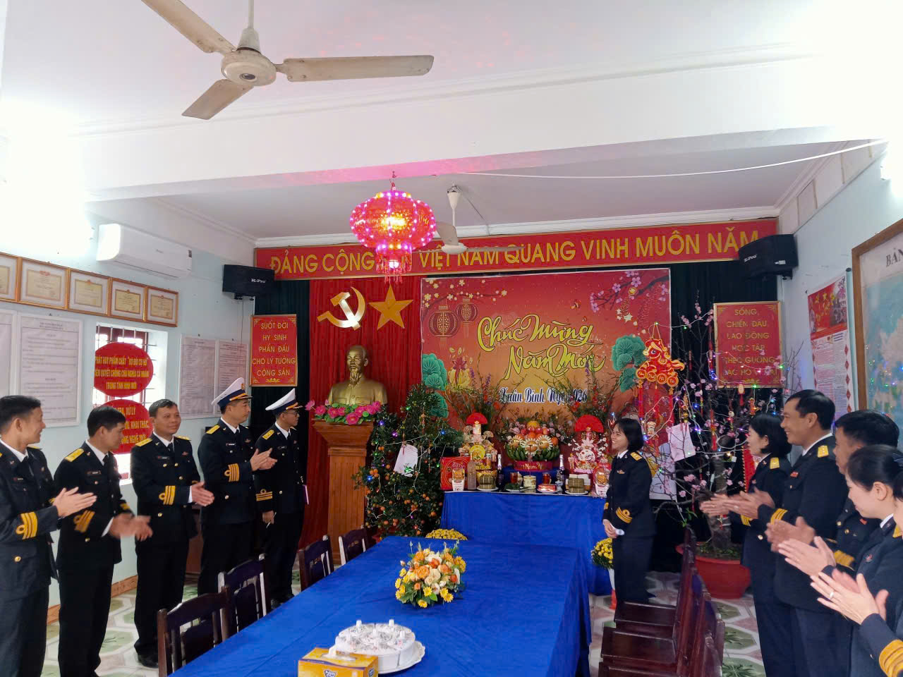 Đặc biệt, ngày mồng 1 tết, cán bộ, chiến sĩ được đón Chuẩn Đô đốc Nguyễn Văn Bách, Phó Tư lệnh, Tham mưu trưởng Quân chủng chúc tết, động viên lực lượng trực tết tại đơn vị.