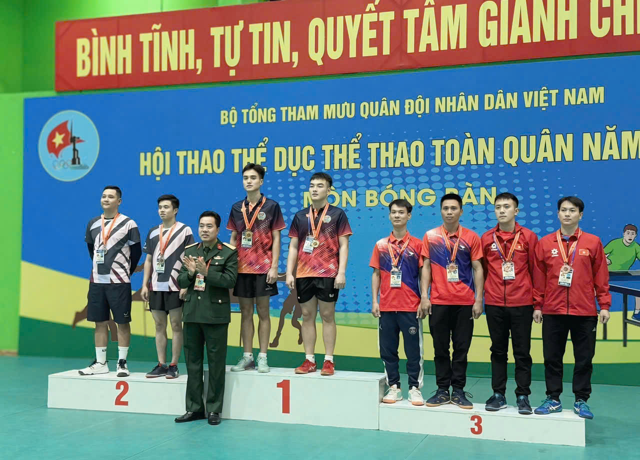 Đôi nam môn bóng bàn của Quân chủng Hải quân (áo đỏ xanh) đoạt HCĐ