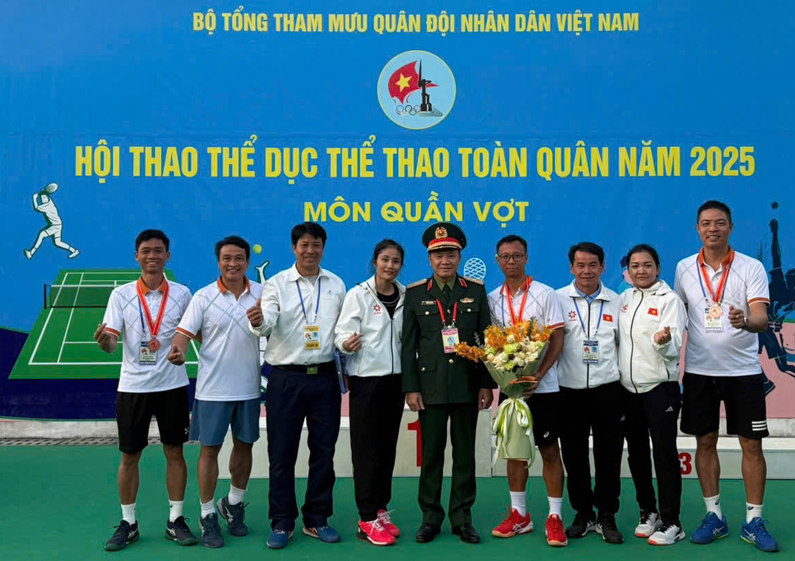 Đôi nam môn quần vợt của Quân chủng Hải quân (2 VĐV ngoài cùng, bên trái ảnh) đoạt HCĐ