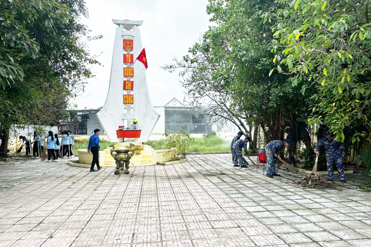 Cùng ngày, tuổi trẻ hai đơn vị đã phối hợp tham gia làm đẹp cảnh quan Đài tưởng niệm liệt sĩ thôn Tân Phú, xã Cam Lâm và tổ chức giao lưu văn hoá, thể thao.