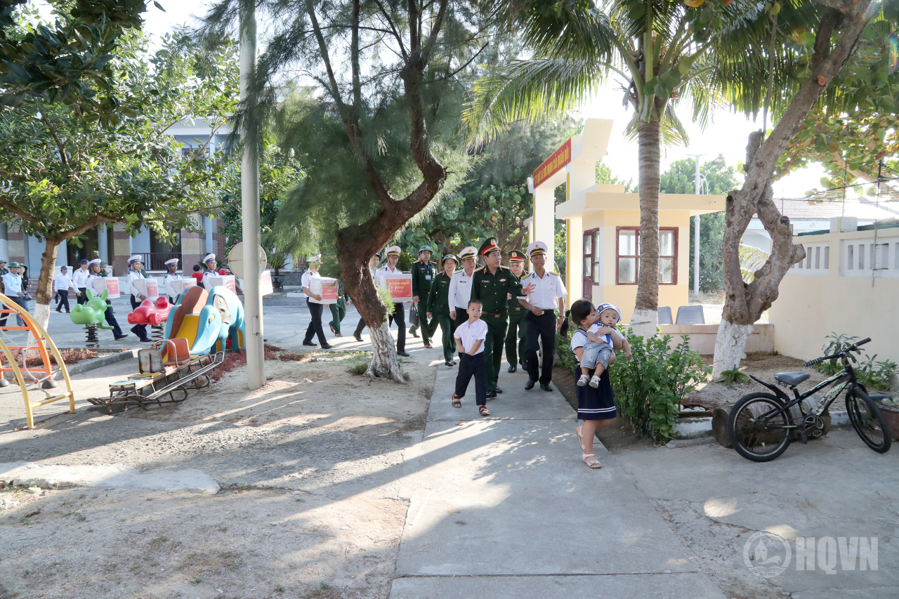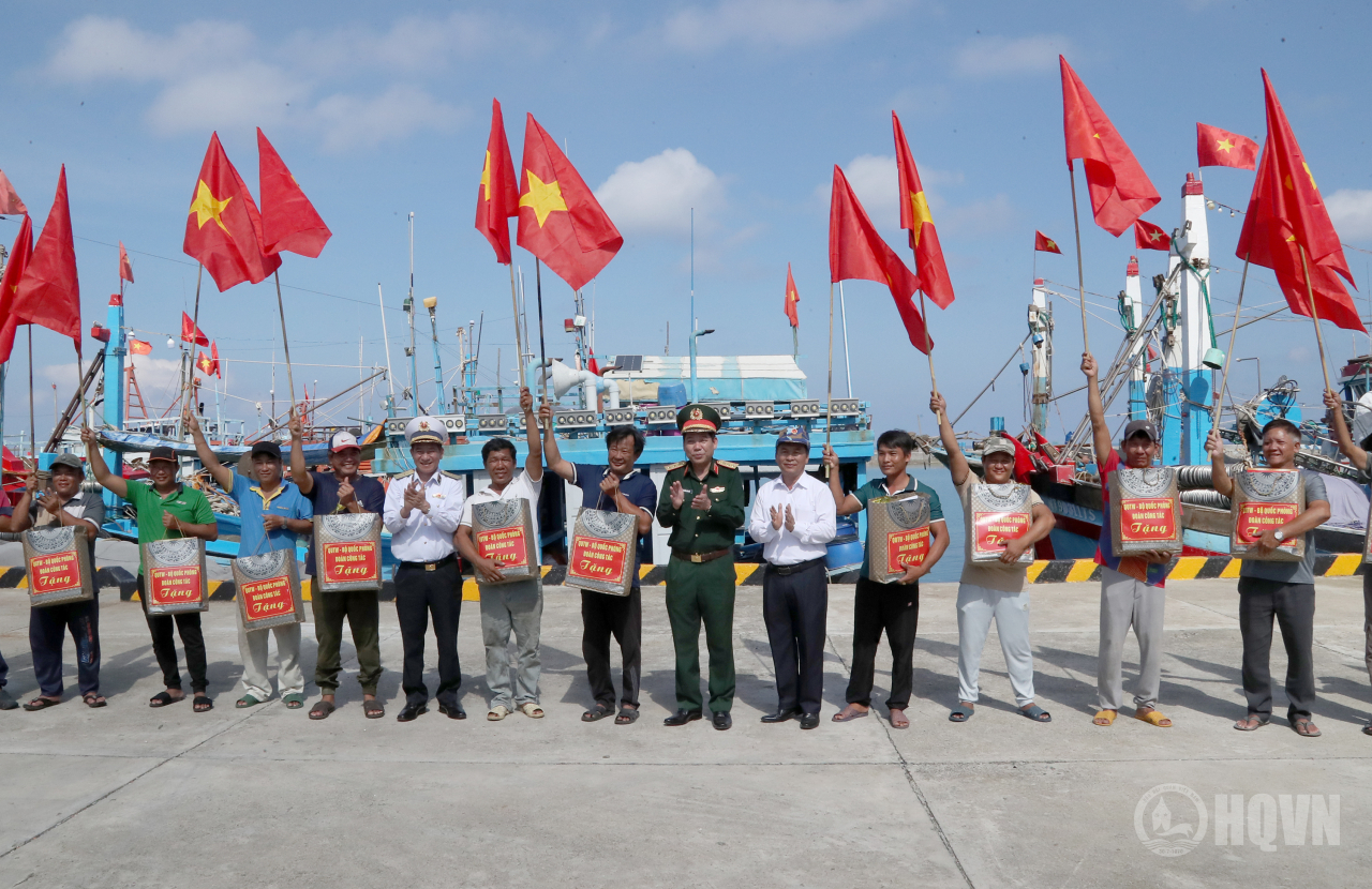 Đoàn công tác Bộ Quốc phòng và Quân chủng Hải quân tặng quà cho các ngư dân miền Trung ra khai thác, đánh bắt hải sản trên vùng biển Trường Sa năm 2026