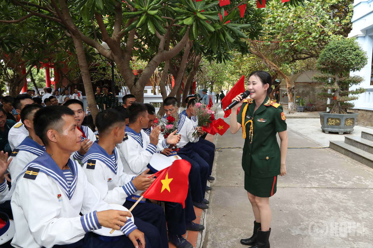 Ca sĩ Đoàn Văn công Quân khu 9 biểu diễn giao lưu văn nghệ với cán bộ, chiến sĩ đảo Trường Sa