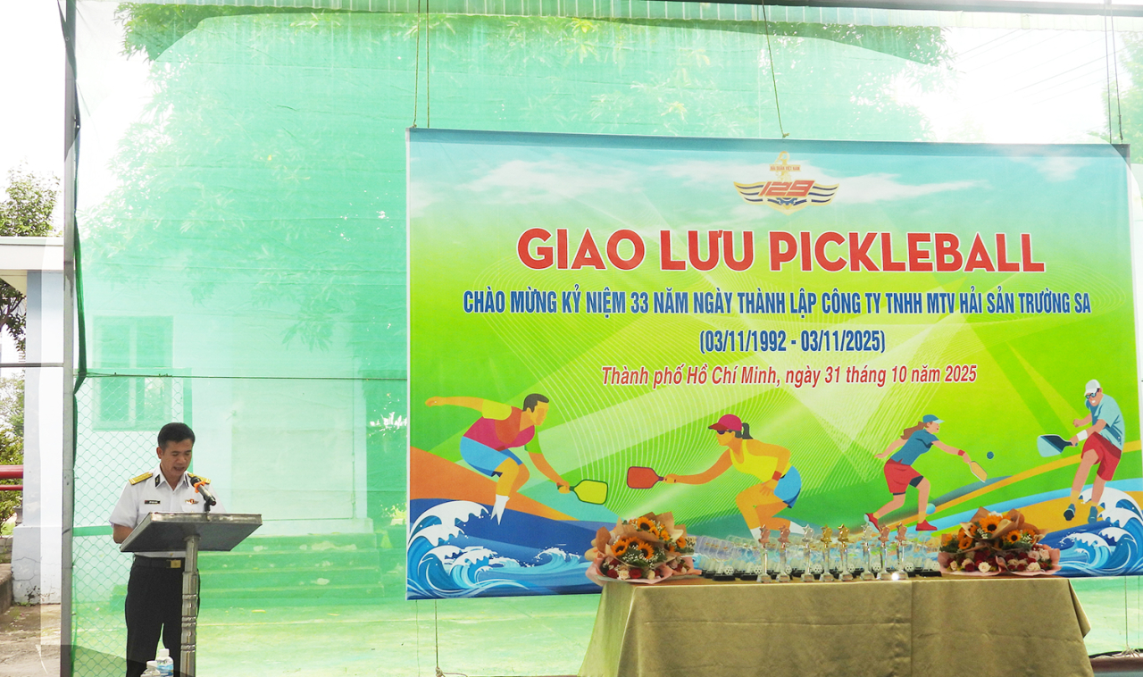 HQ Online - Chiều 31/10, tại P. Phước Thắng (TP. Hồ Chí Minh), Công ty TNHH MTV Hải sản Trường Sa (Hải đoàn 129 Hải quân) tổ chức giao lưu thể thao chào mừng kỷ niệm 33 năm ngày thành lập Công ty (3/11/1992 - 3/11/2025). Thượng tá Bùi Ngọc Sang, Bí thư Đảng ủy, Chính ủy Hải đoàn, chủ trì khai mạc.
