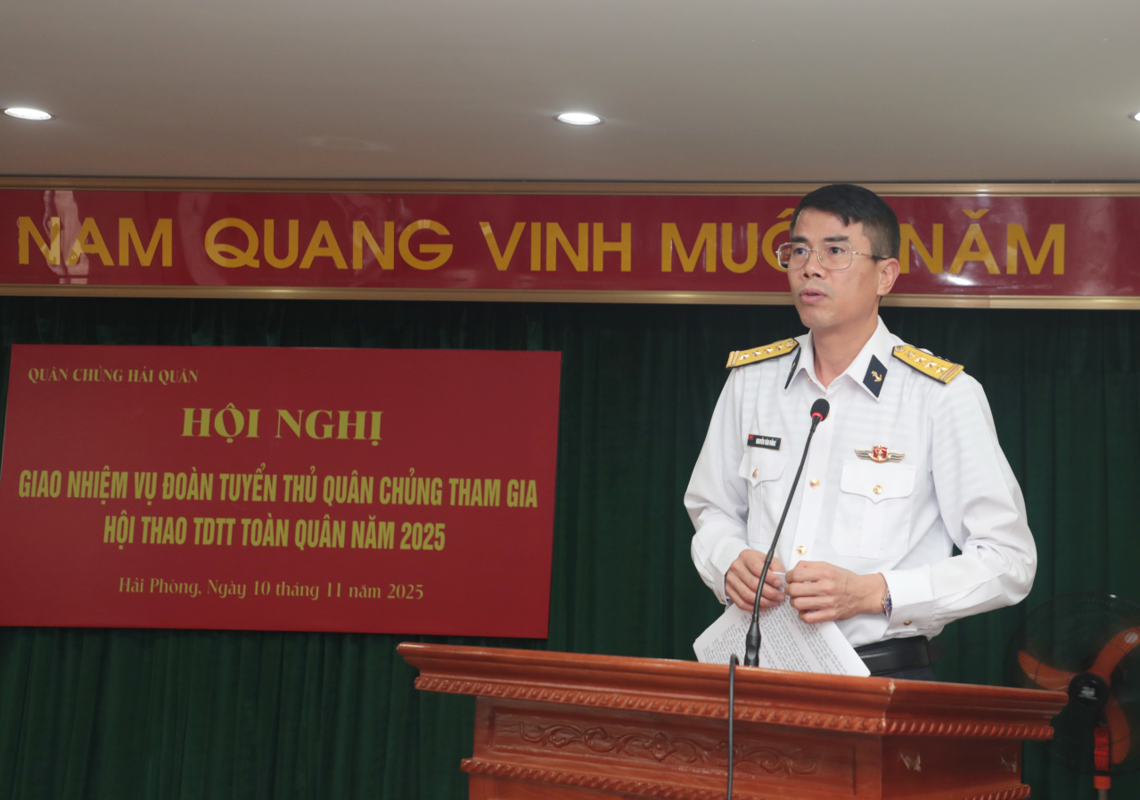HQ Online - Chiều 10/11, tại Hải Phòng, Quân chủng Hải quân tổ chức Hội nghị giao nhiệm vụ cho đoàn tuyển thủ tham gia Hội thao thể dục thể thao (TDTT) toàn quân năm 2025. Đại tá Nguyễn Văn Đồng, Phó Tham mưu trưởng Hải quân chủ trì giao nhiệm vụ.