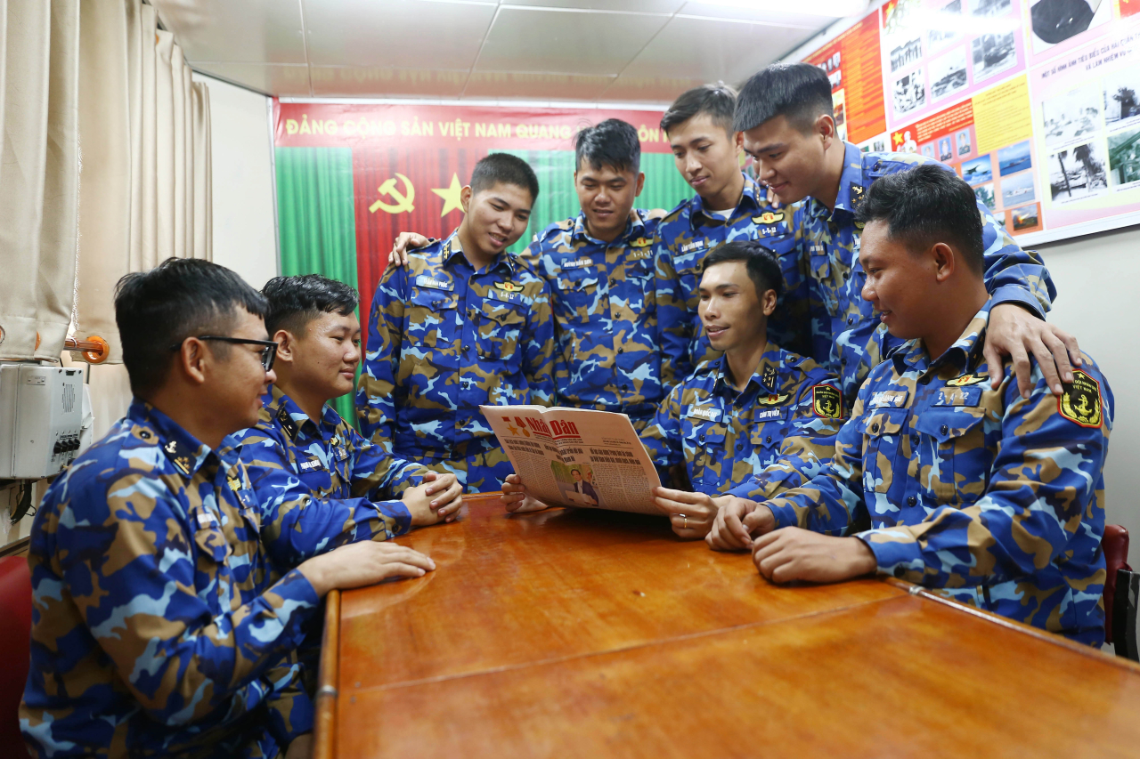 Cùng với sinh hoạt chính trị, tàu duy trì cập nhật tin tức thời sự trong nước, quốc tế, nhất là tình hình biển đảo cho bộ đội hằng ngày. Những thông tin giúp cán bộ, chiến sĩ nâng cao nhận thức, hiểu rõ bối cảnh chung của nhiệm vụ, từ đó củng cố thêm bản lĩnh, ý chí quyết tâm.