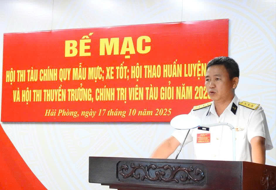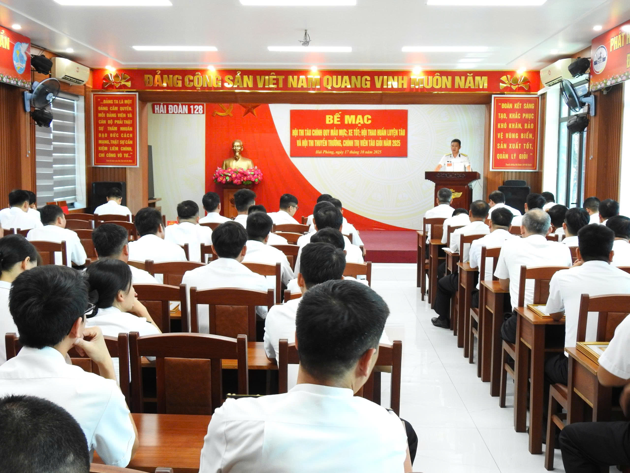 HQ Online - Ngày 17/10, tại Hải Phòng, Hải đoàn 128 tổ chức bế mạc Hội thi tàu chính quy mẫu mực, xe tốt; Hội thao huấn luyện tàu và Hội thi thuyền trưởng, chính trị viên tàu giỏi năm 2025. Thượng tá Vũ Văn Tư, Phó Hải đoàn trưởng chủ trì.