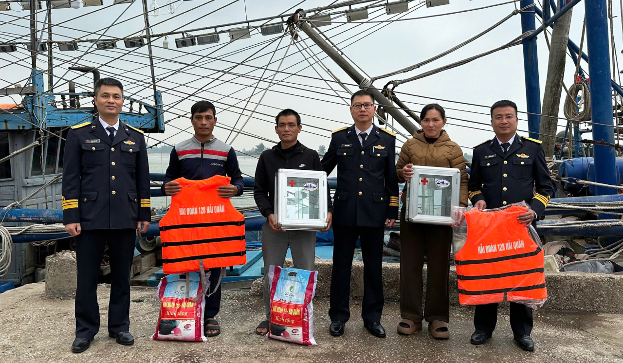 Hải đoàn 128 còn tổ chức khám, tư vấn sức khỏe, cấp thuốc miễn phí cho gần 100 ngư dân tại cảng cá Hải Châu, phường Ngọc Sơn, tỉnh Thanh Hóa (trị giá 15 triệu đồng).