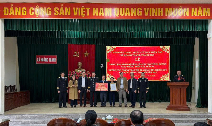 Cũng trong dịp này, Hải đoàn 128 đã bàn giao kinh phí hỗ trợ xây dựng, nâng cấp, cải tạo tuyến đường giao thông thôn Tây Xuân Vi, xã Hoằng Thanh, tỉnh Thanh Hóa với số tiền 80 triệu đồng.