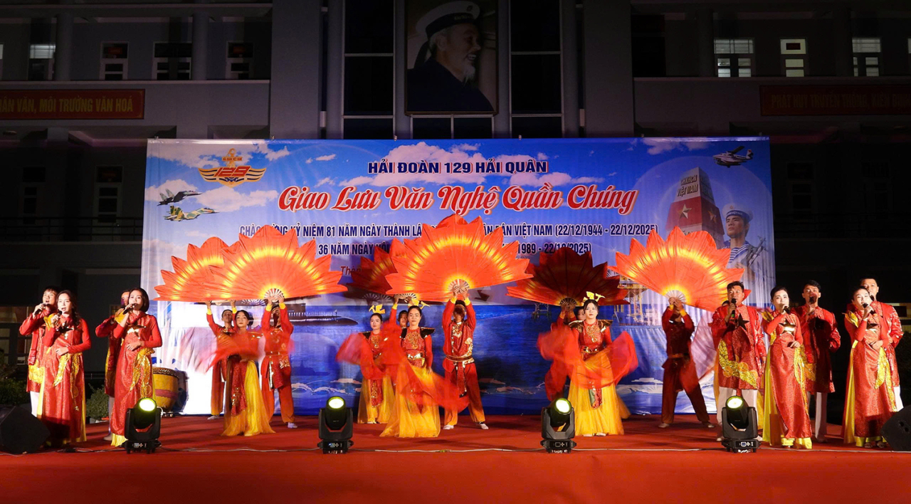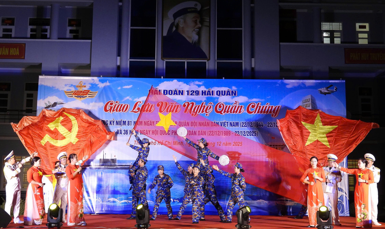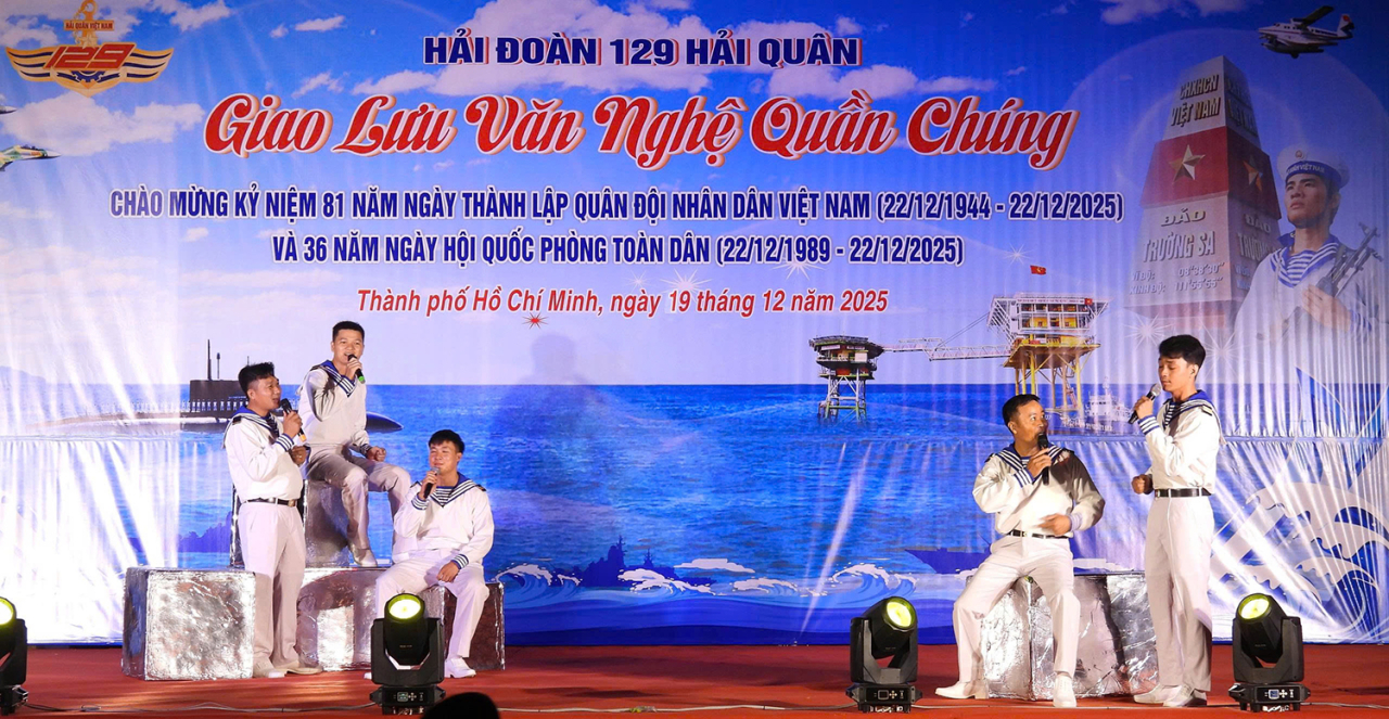 HQ Online - Tối 19/12, tại phường Phước Thắng (TP Hồ Chí Minh), Hải đoàn 129 tổ chức đêm giao lưu văn nghệ chào mừng kỷ niệm 81 năm Ngày thành lập Quân đội nhân dân Việt Nam (22/12/1944 - 22/12/2025) và 36 năm Ngày hội quốc phòng toàn dân (22/12/1989 - 22/12/2025) với chủ đề “Đoàn kết, khắc phục khó khăn, kiên trì bám biển, xứng danh Bộ đội Cụ Hồ - Người chiến sĩ Hải quân”. Thượng tá Nguyễn Ngọc Anh, Phó Hải đoàn trưởng tới dự.