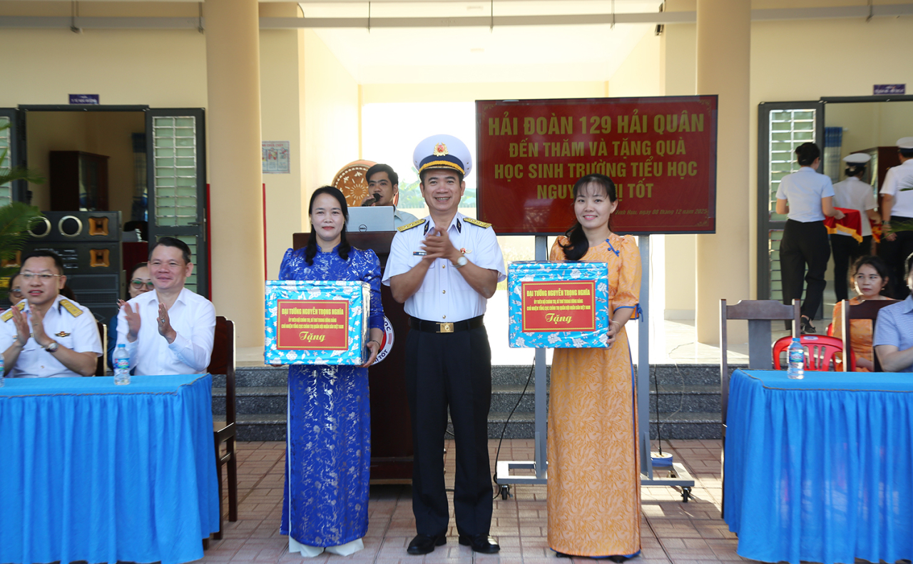 Tại buổi lễ, Hải đoàn 129 phối hợp với Ban Tuyên giáo và Dân vận Tỉnh ủy Đồng Tháp trao 15 suất quà (mỗi suất trị giá 500.000 đồng) tặng các em học sinh nghèo vượt khó đang học tập tại Trường Tiểu học Nguyễn Thị Tốt. Những phần quà thể hiện tấm lòng, tình cảm của cán bộ, chiến sĩ Hải đoàn dành cho các em nhỏ nơi vùng sông nước, góp phần động viên các em nỗ lực hơn trong học tập và rèn luyện.