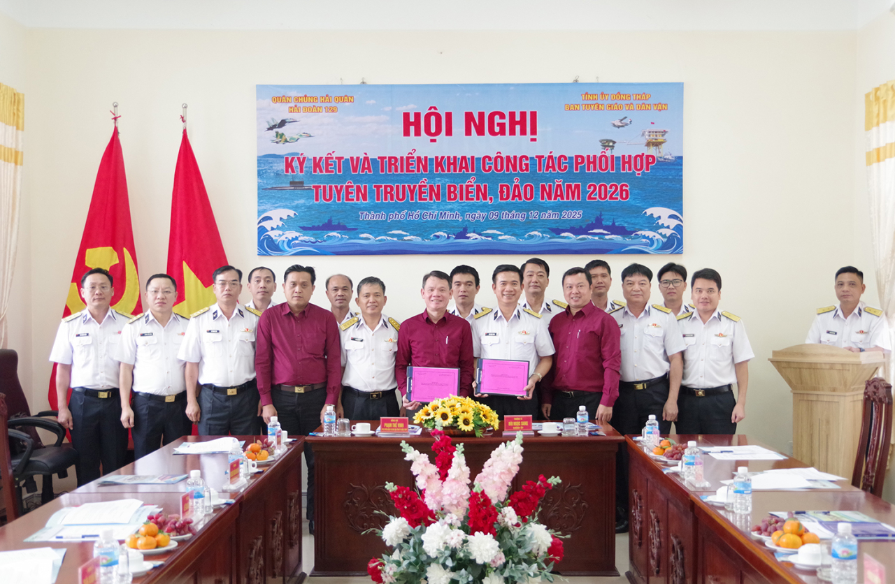 Tại hội nghị, Hải đoàn 129 và Ban Tuyên giáo và Dân vận Tỉnh ủy Đồng Tháp đã thống nhất các nội dung kế hoạch phối hợp tuyên truyền biển đảo năm 2026, nhằm góp phần nâng cao nhận thức cho cán bộ, đảng viên và nhân dân trên địa bàn tỉnh Đồng Tháp.