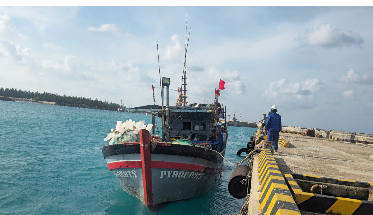 Tàu cá PY 90009 TS neo đậu tại âu tàu đảo Trường Sa