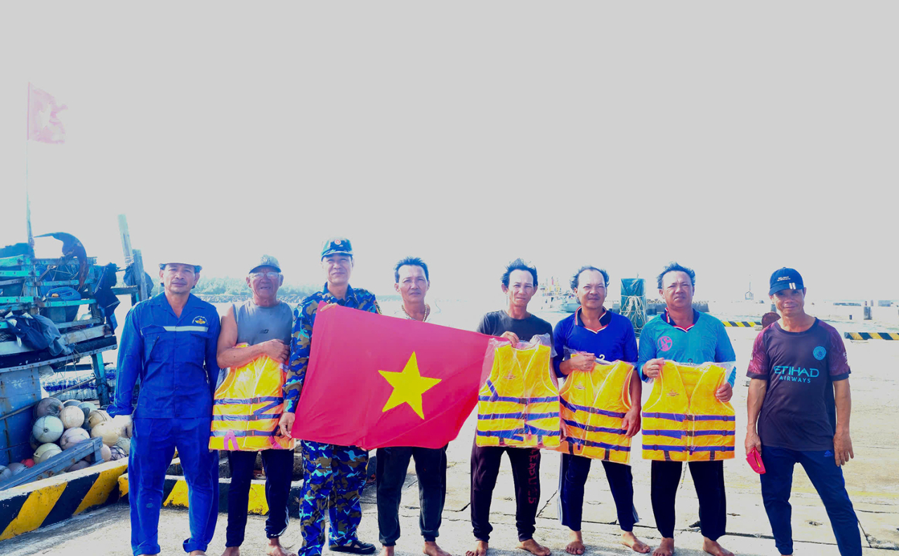 Tặng cờ Tổ quốc và áo phao cứu sinh cho ngư dân tàu PY 90009 TS