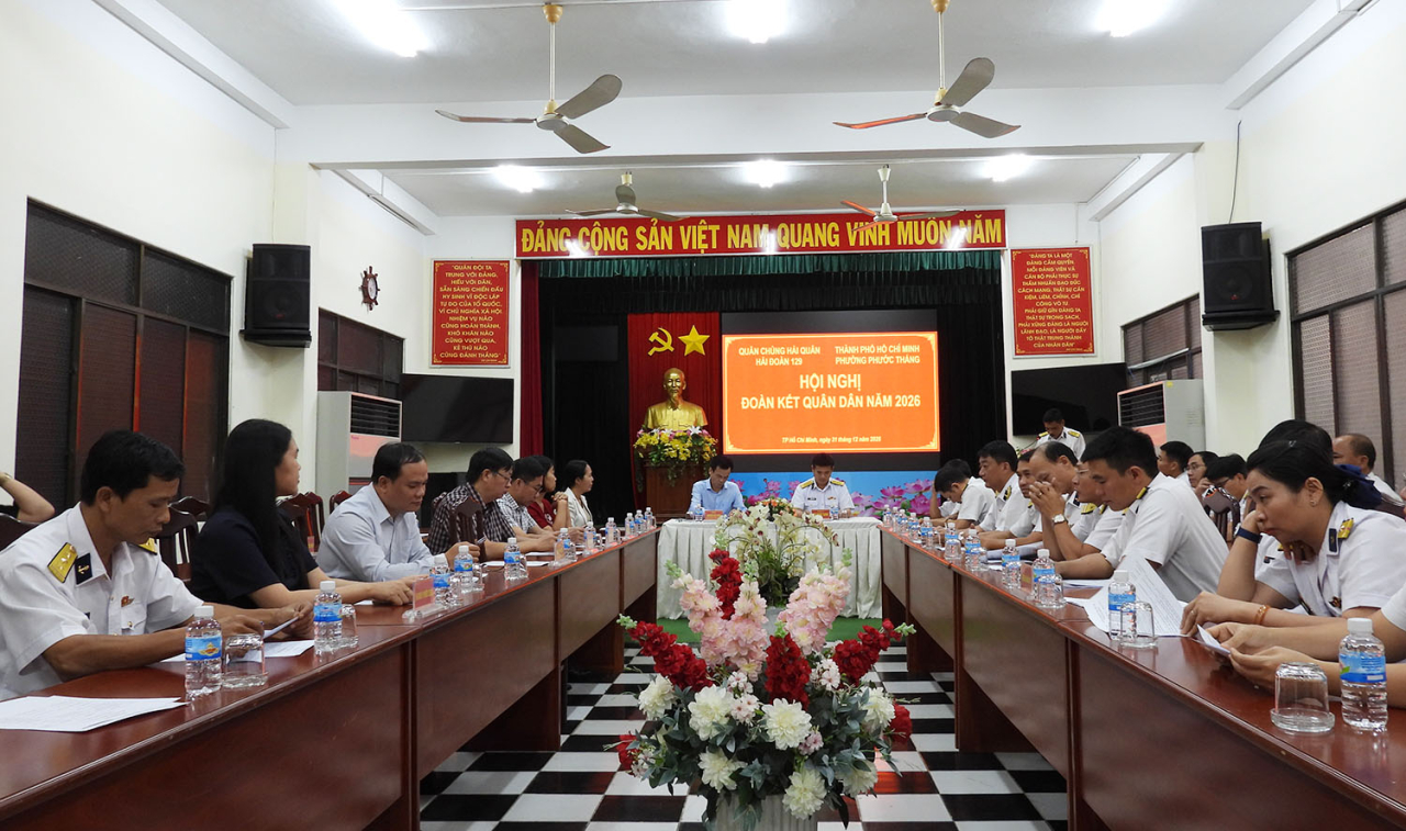Chiều 31/12, Hải đoàn 129 Hải quân phối hợp với phường Phước Thắng (TP. Hồ Chí Minh) tổ chức Hội nghị sơ kết hoạt động kết nghĩa năm 2025 và ký kết chương trình phối hợp hoạt động năm 2026.