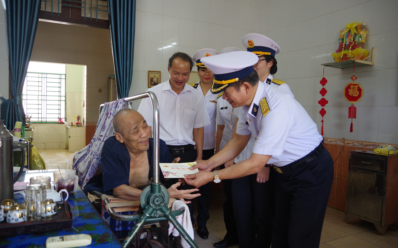 HQ Online - Chiều ngày 30/1, đoàn công tác Hải đoàn 129 Hải quân do Thượng tá Bùi Ngọc Sang, Chính ủy Hải đoàn 129 làm trưởng đoàn đã đến thăm, tặng quà tại Trung tâm điều dưỡng thương binh, bệnh binh và người có công Long Đất (TP Hồ Chí Minh).
