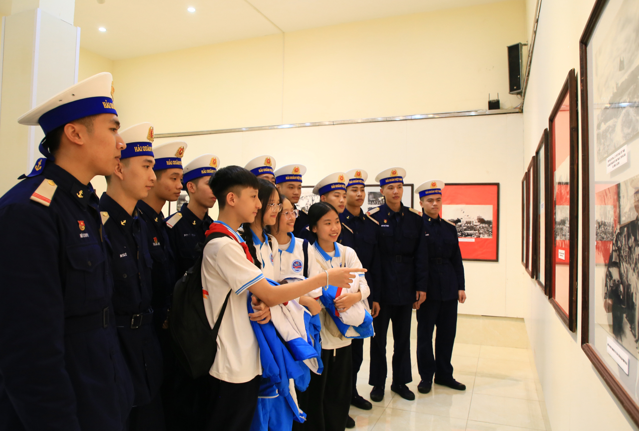 Chiến sĩ Hải quân và học sinh thành phố Hải Phòng tham quan triển lãm