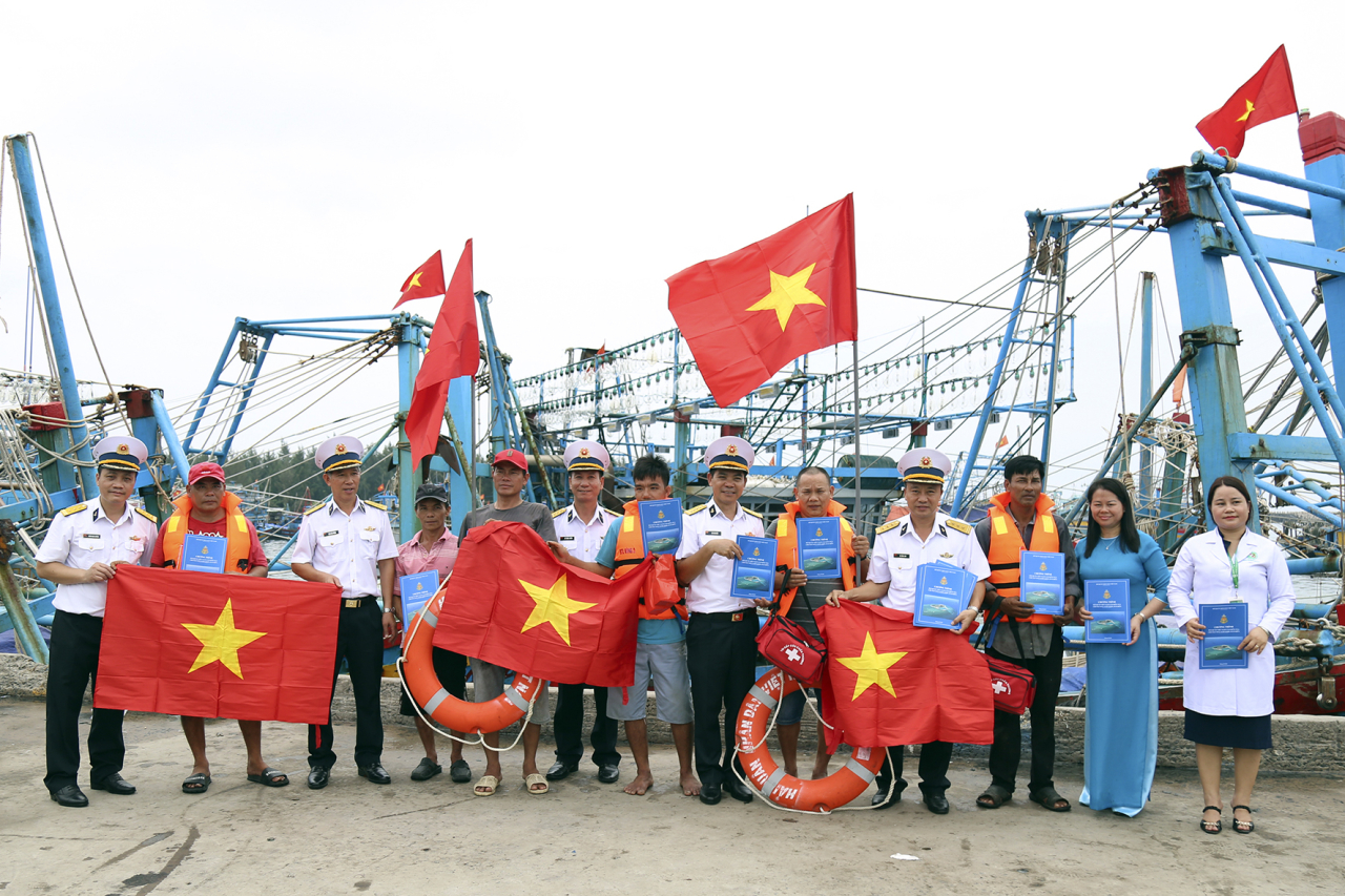 Bộ Tư lệnh Vùng 2 tặng ngư dân cờ Tổ quốc, phao cứu sinh và tài liệu tuyên truyền pháp luật