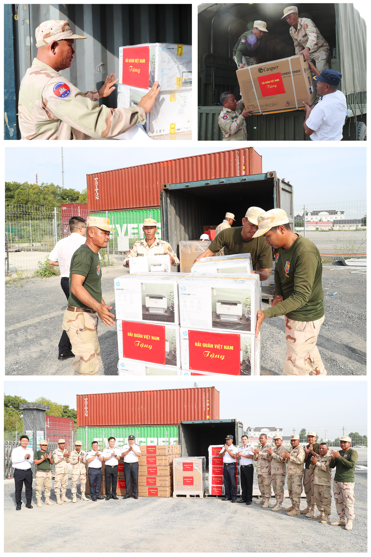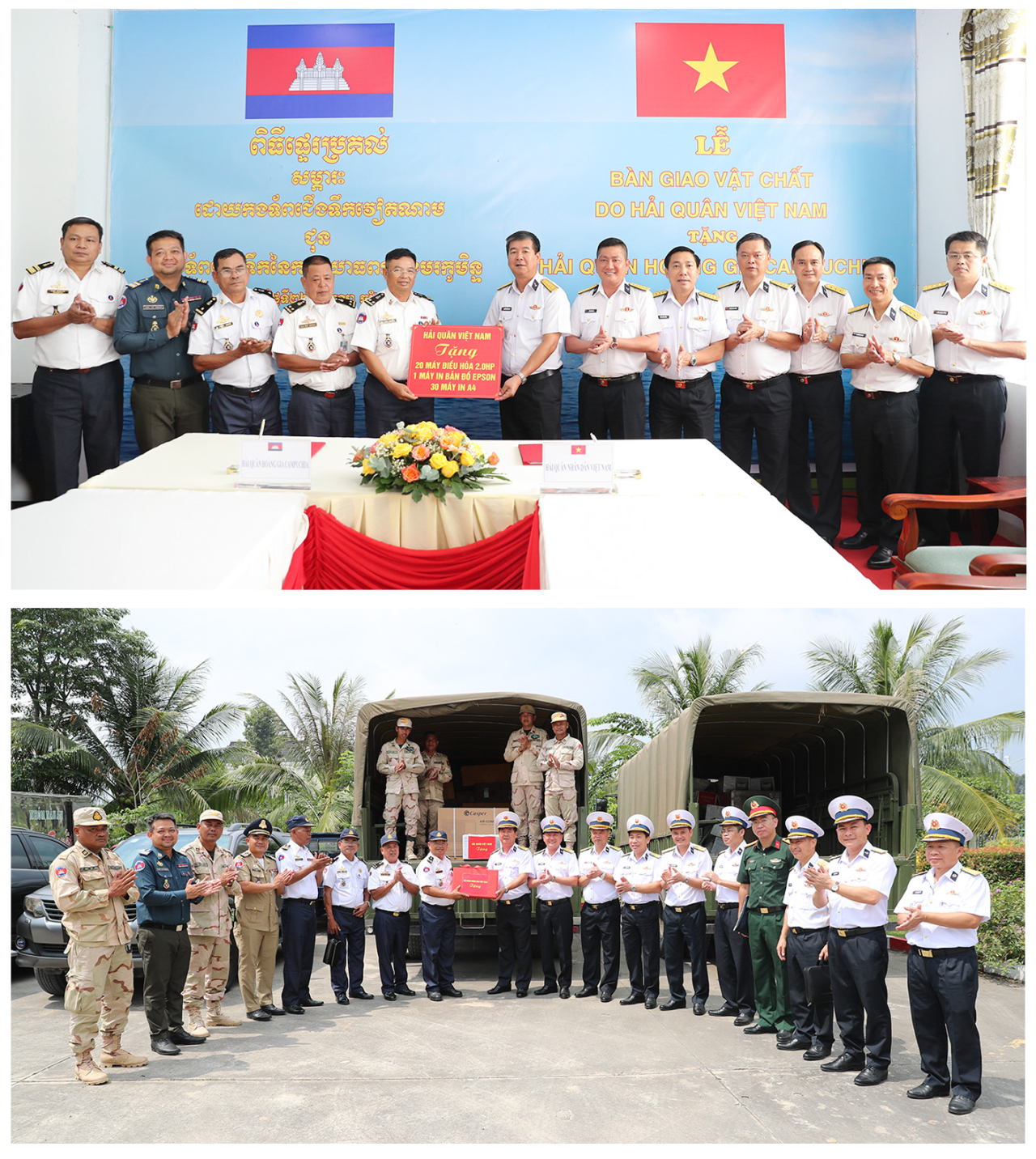 Đợt này, Hải quân Việt Nam đã trao tặng Hải quân Campuchia gói vật chất bao gồm 20 máy điều hòa, 30 máy in A4 và 1 máy in bản đồ 36 inch. Tổng giá trị gói vật chất trao tặng gần 600 triệu đồng.