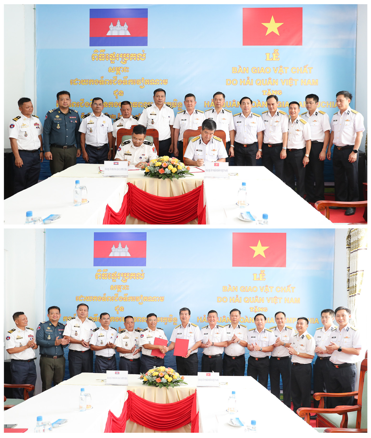 Về phía Hải quân Hoàng gia Campuchia có Phó Đô đốc Soth Saroeun, Phó Tư lệnh, Tham mưu trưởng, Bộ Tư lệnh Bảo vệ đảo-bờ biển, cùng đại diện các cơ quan chức năng.