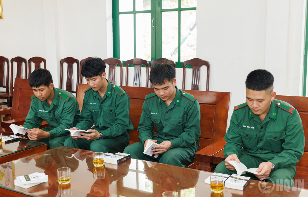 Chiến sĩ Đồn Biên phòng Tuy Đức (Lâm Đồng) hào hứng với những cuốn sách quý