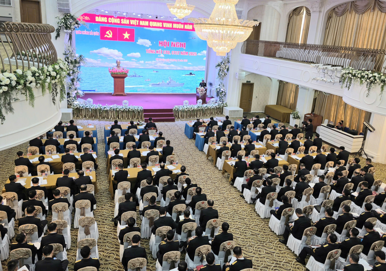 HQ Online - Chiều 19/12, tại TP. Hải Phòng, Quân chủng Hải quân tổ chức Hội nghị tổng kết công tác đảng, công tác chính trị (CTĐ, CTCT) năm 2025. Phó Đô đốc Nguyễn An Phong, Bí thư Đảng ủy, Chính ủy Hải quân dự, phát biểu chỉ đạo hội nghị. Tham dự hội nghị có Chuẩn Đô đốc Đỗ Văn Yên, Phó Chính ủy Hải quân. Chuẩn Đô đốc Vũ Anh Tuấn, Chủ nhiệm Chính trị chủ trì hội nghị.
