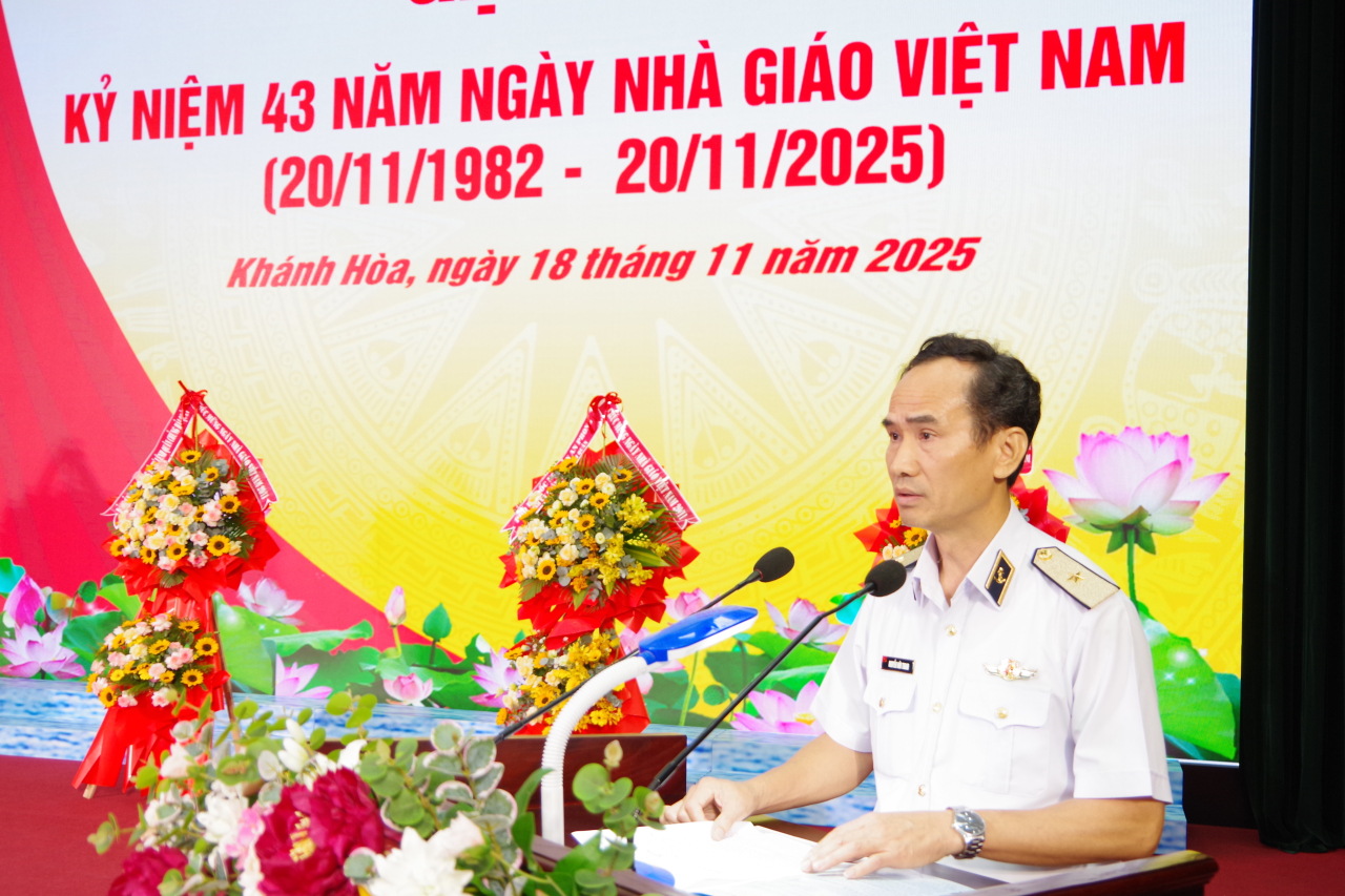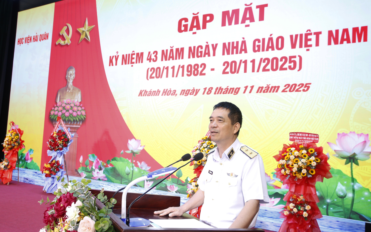 HQ Online - Chiều 18/11, tại Khánh Hòa, Học viện Hải quân tổ chức gặp mặt kỷ niệm 43 năm Ngày Nhà giáo Việt Nam (20/11/1982 - 20/11/2025). Phó Đô đốc Nguyễn An Phong, Bí thư Đảng ủy, Chính ủy Quân chủng Hải quân dự và phát biểu chúc mừng.