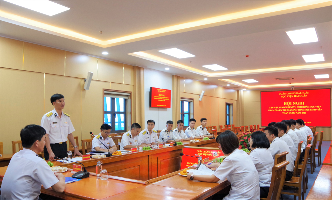 HQ Online - Chiều 1/4, tại tỉnh Khánh Hòa, Học viện Hải quân tổ chức Hội nghị gặp mặt, giao nhiệm vụ cho đội tuyển tham dự kỳ thi Olympic Toán học sinh viên toàn quốc năm 2026. Đại tá, PGS, TS Lại Hồng Đông, Phó Giám đốc Học viện, chủ trì.