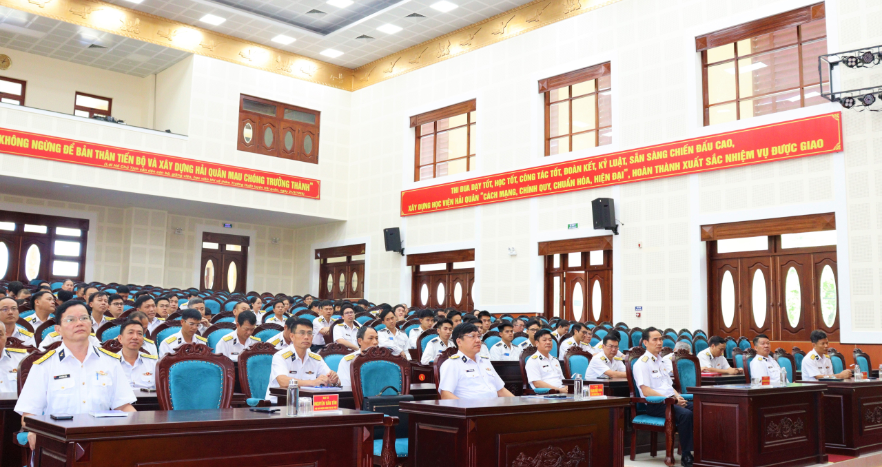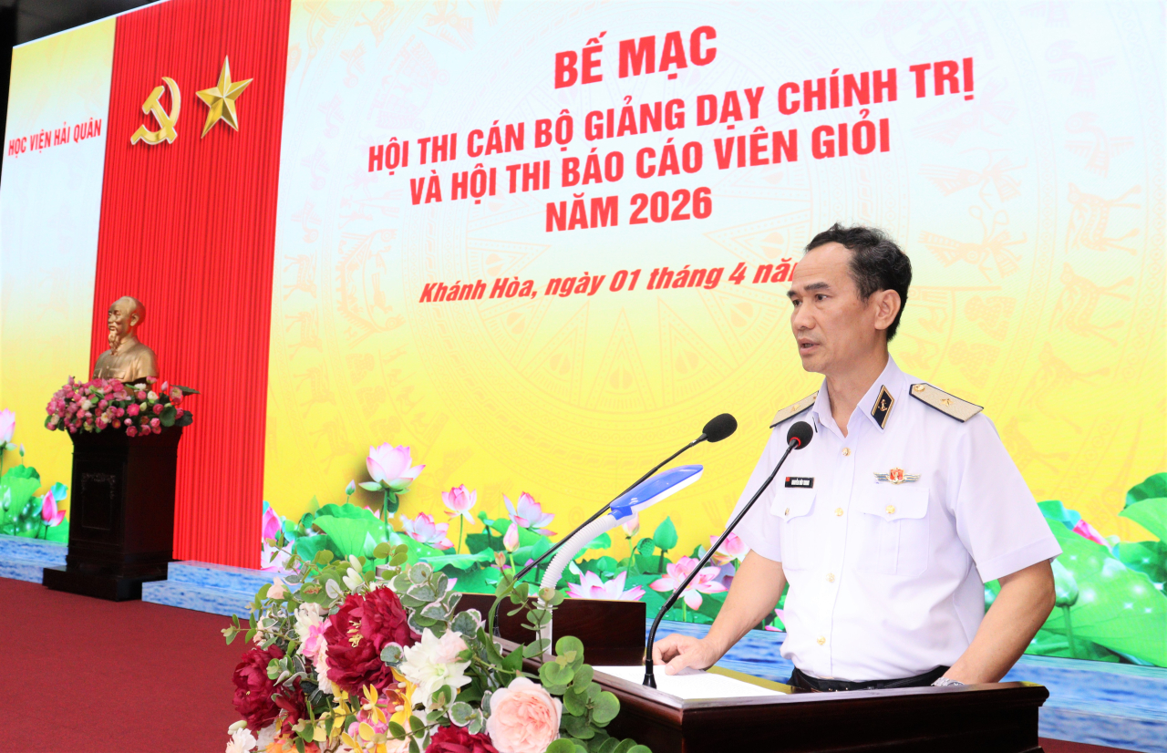 HQ Online - Chiều 1/4, tại tỉnh Khánh Hoà, Học viện Hải quân tổ chức bế mạc Hội thi cán bộ giảng dạy chính trị và Hội thi báo cáo viên giỏi năm 2026. Chuẩn Đô đốc Nguyễn Hữu Thoan, Bí thư Đảng ủy, Chính ủy Học viện dự và chủ trì.