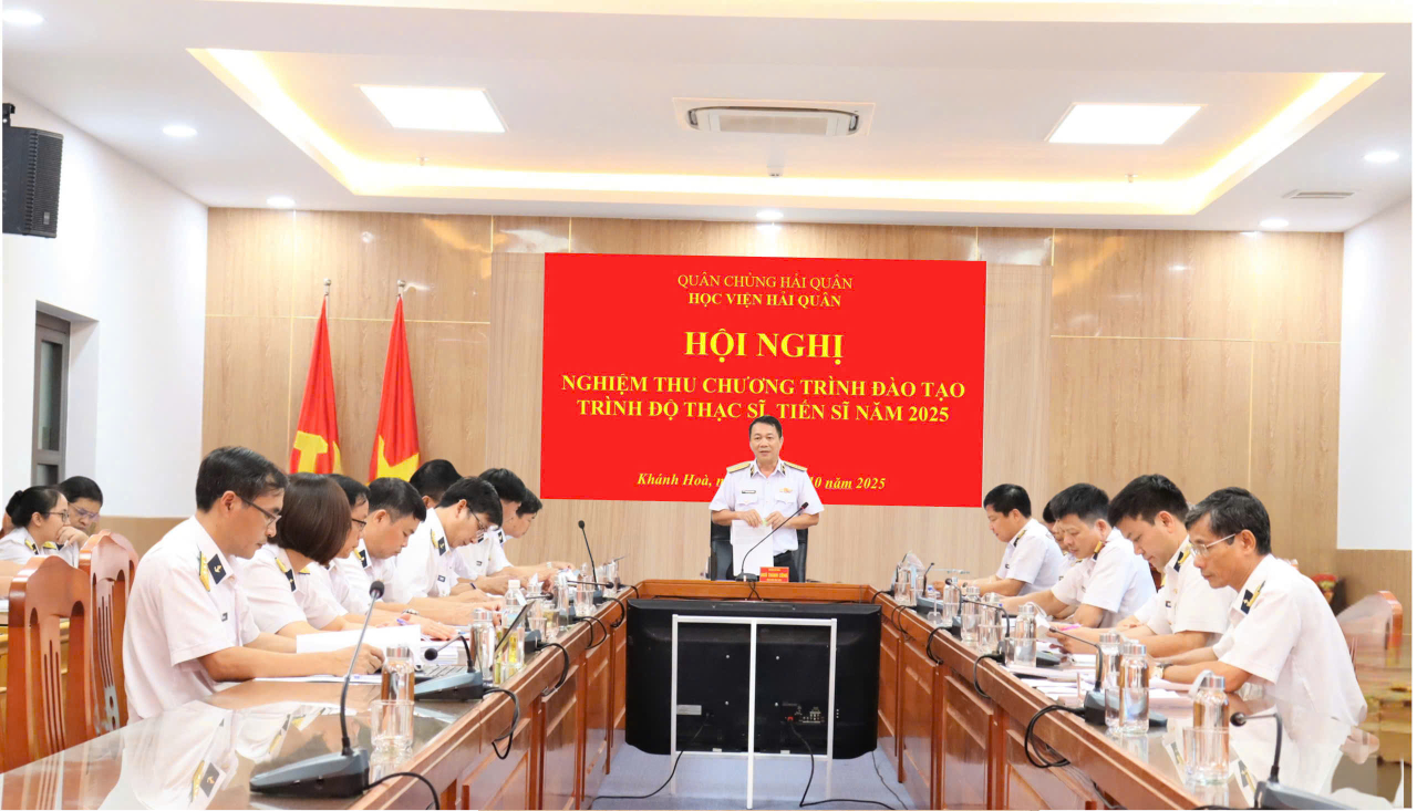 HQ Online - Chiều 21/10, tại tỉnh Khánh Hòa, Học viện Hải quân tổ chức Hội nghị nghiệm thu chương trình đào tạo trình độ thạc sĩ, tiến sĩ năm 2025. Chuẩn Đô đốc, PGS, TS Ngô Thành Công, Giám đốc Học viên, Chủ tịch Hội đồng chủ trì.