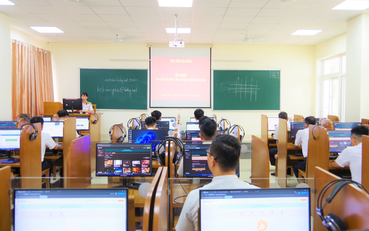 HQ Online - Chiều 11/11, tại tỉnh Khánh Hòa, Học viện Hải quân tổ chức tập huấn khai thác nền tảng chia sẻ video VNATUBE cho gần 100 cán bộ, giảng viên.