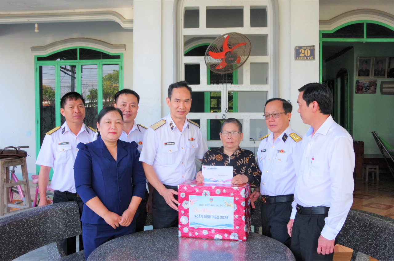 HQ Online - Sáng 6/2, tại xã Suối Hiệp (tỉnh Khánh Hòa), Học viện Hải quân tổ chức đoàn công tác do đồng chí Chuẩn Đô đốc Nguyễn Hữu Thoan, Chính ủy Học viện làm trưởng đoàn, đến thăm, tặng quà các gia đình chính sách, gia đình có hoàn cảnh khó khăn và các hộ dân bị ảnh hưởng bởi thiên tai trên địa bàn. Đây là một trong những hoạt động ý nghĩa nằm trong Chương trình “Xuân chung tay giữ biển - Tết thắm tình quân dân”, nhân dịp Xuân Bính Ngọ năm 2026.